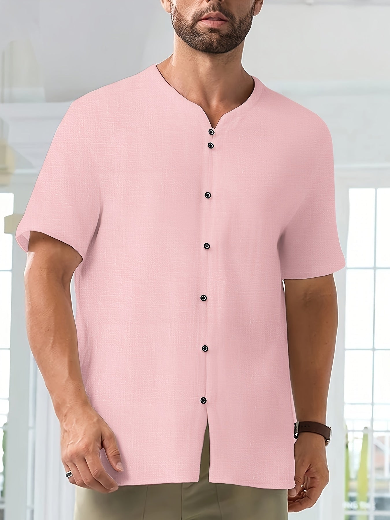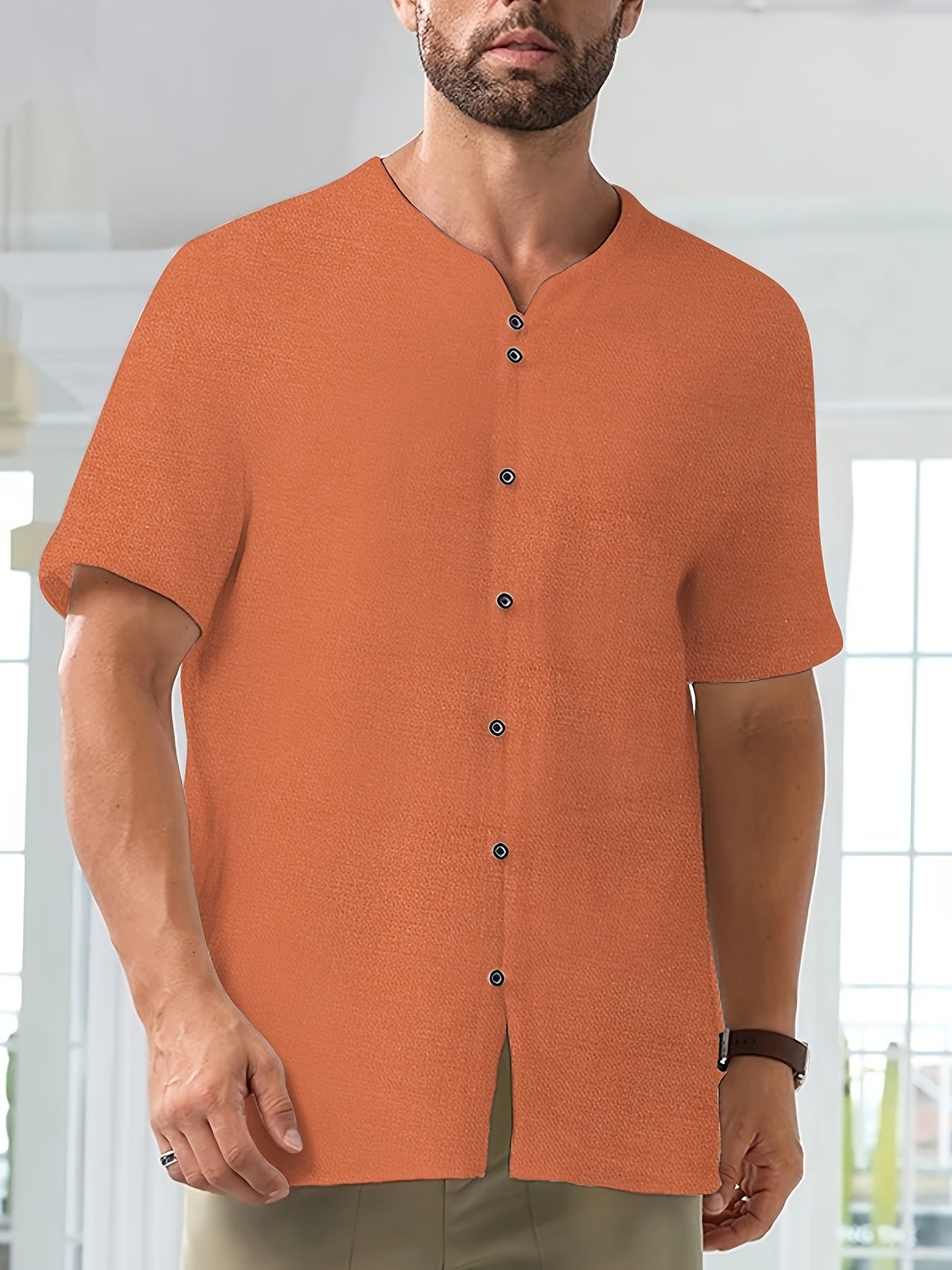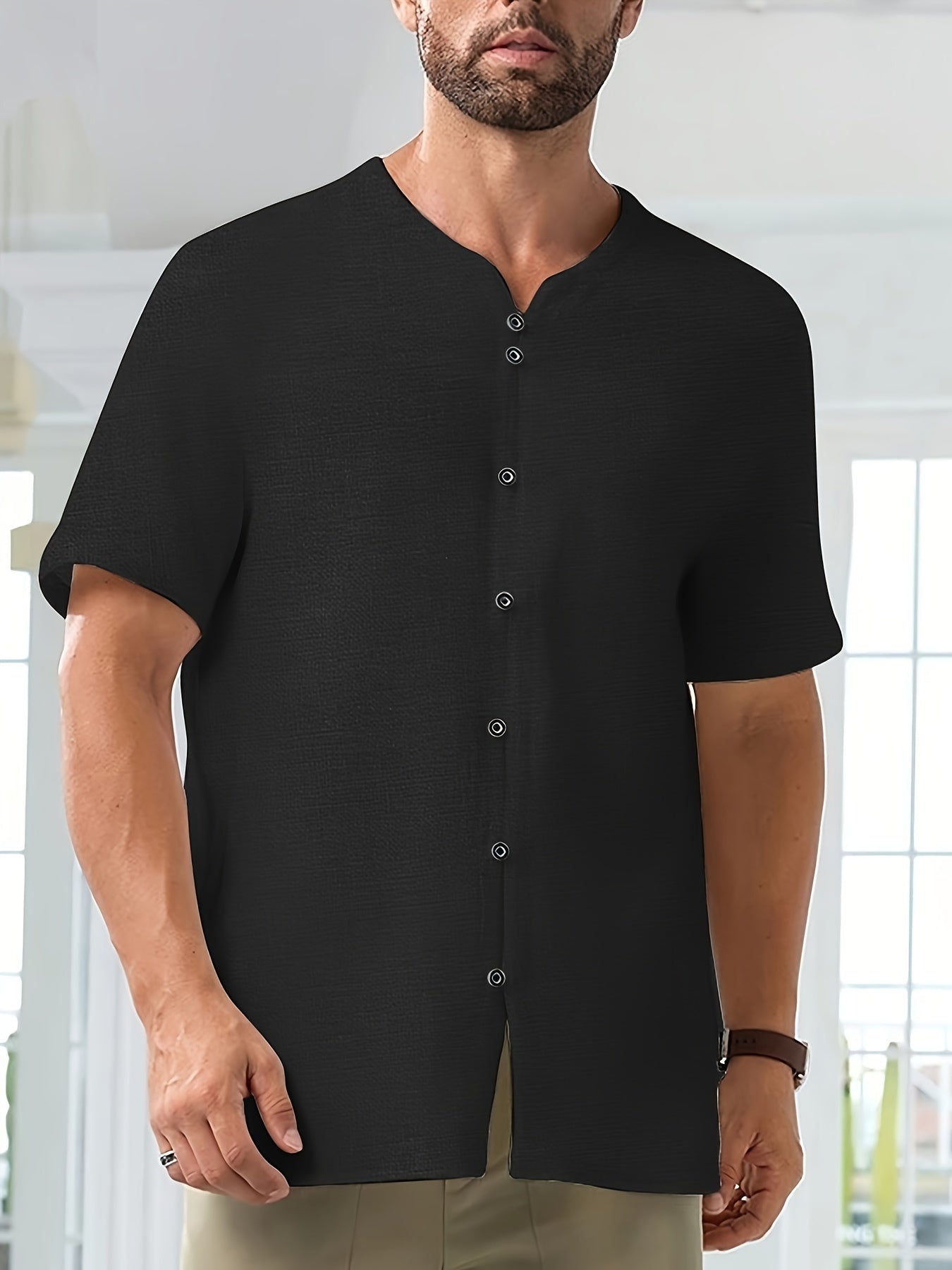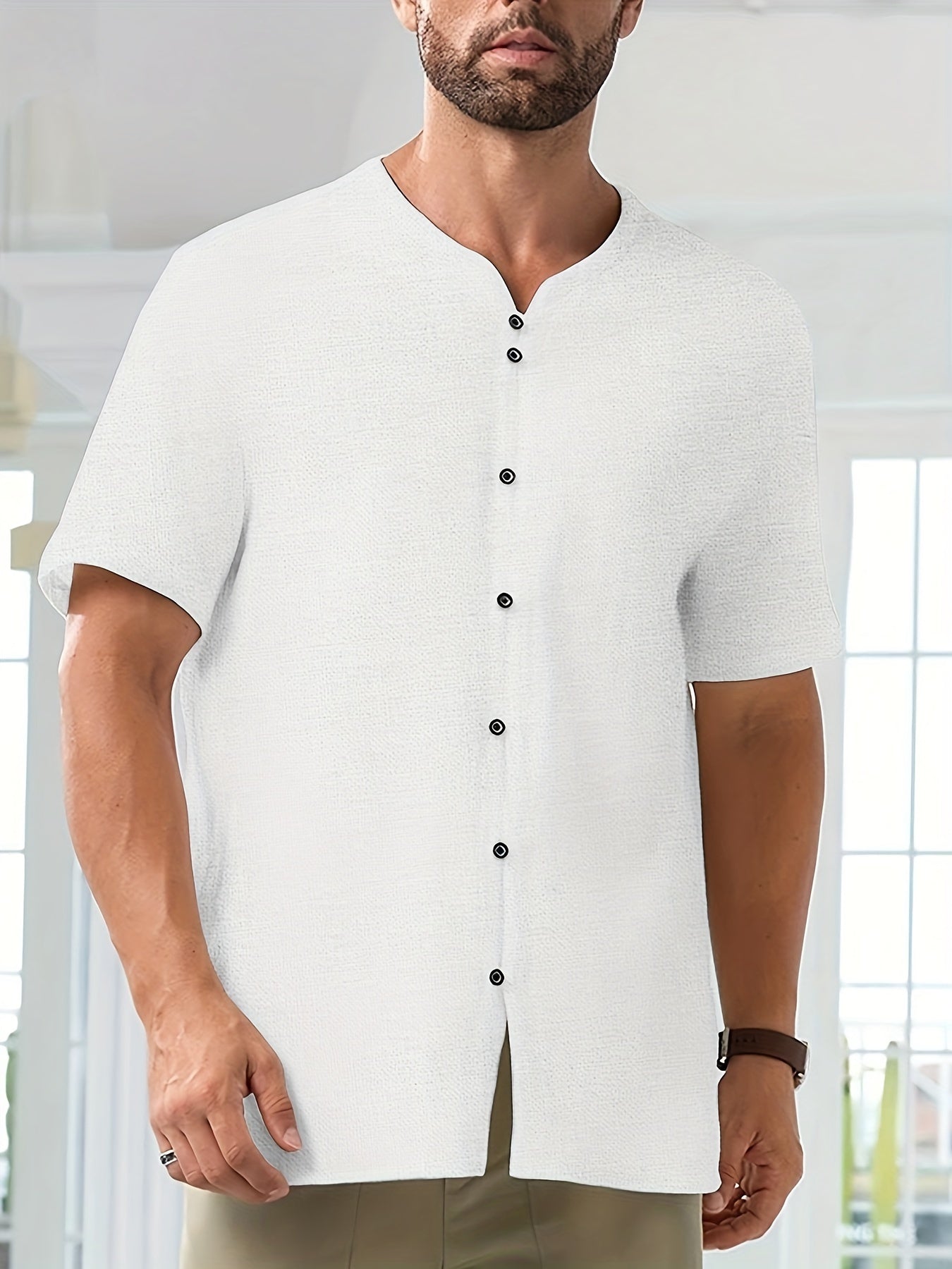 Baumwolle-Leinen-Hemd – Kurzarm, Leicht & Atmungsaktiv, Casual mit Knopfleiste