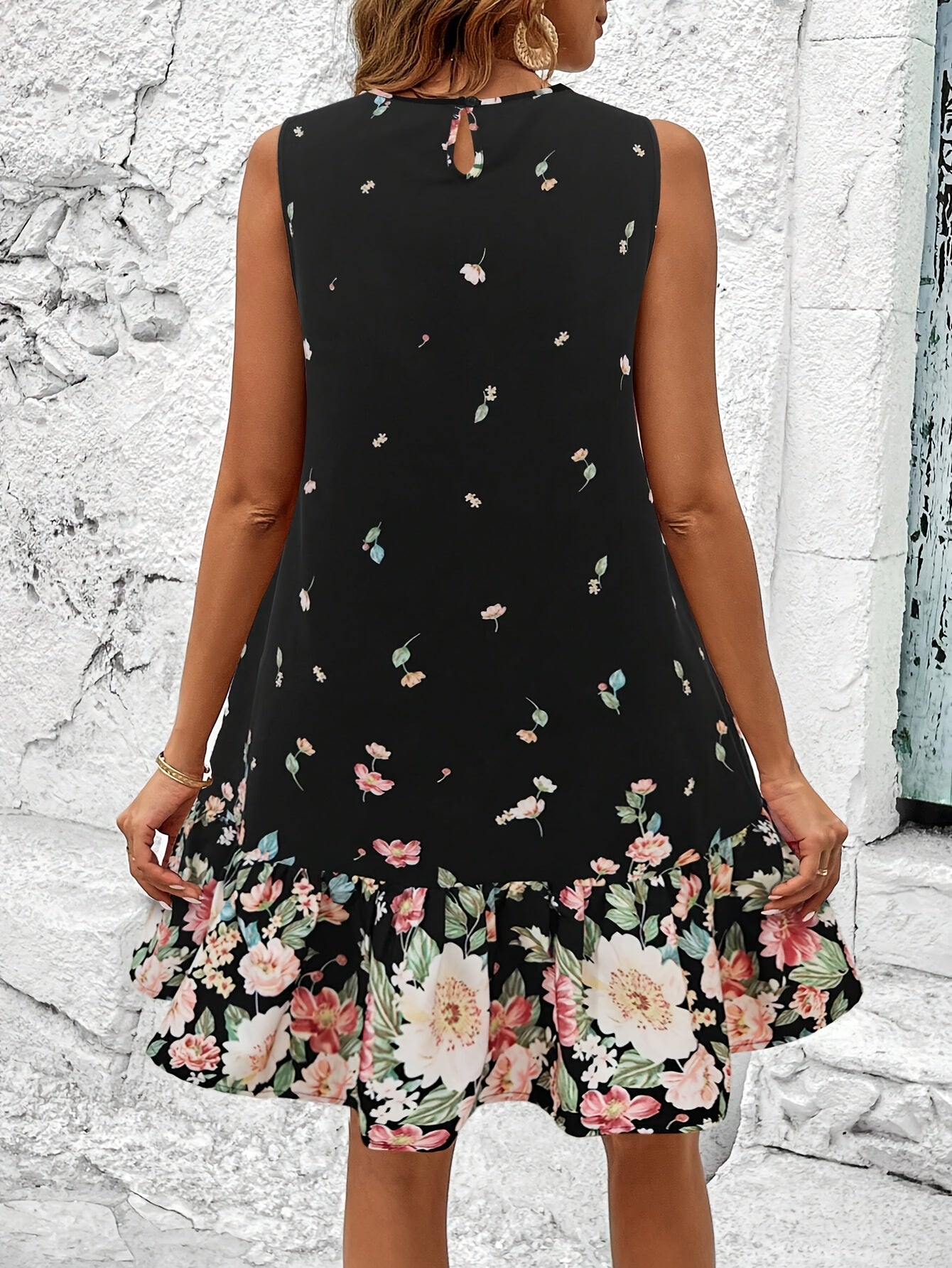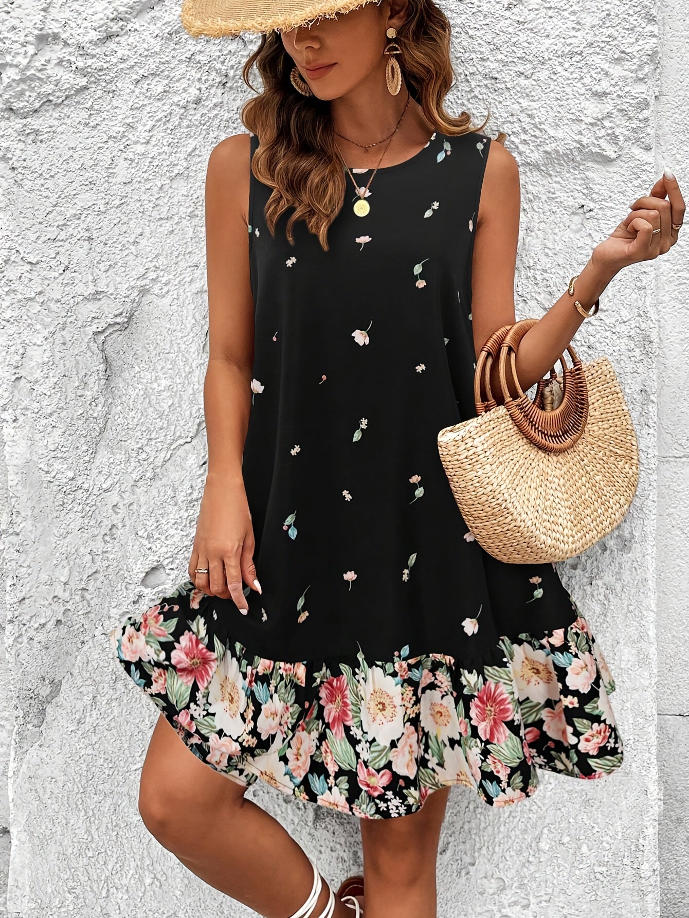 Blumenkleid für Damen, Ärmelloses Tankkleid mit Rundhalsausschnitt