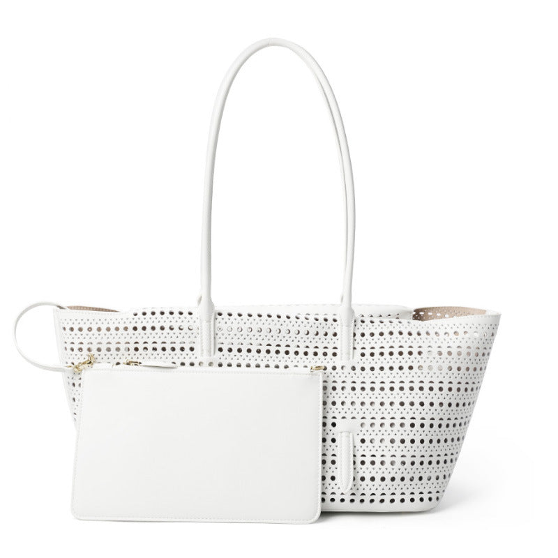Elegante Shopper-Bag mit perforiertem Muster – modernes, luftiges Design kombiniert mit praktischer Funktionalität. Das zusätzliche Etui bietet Ordnung und Flexibilität. Perfekt geeignet für Alltag, Shopping oder Freizeit mit stilvollem Auftritt.