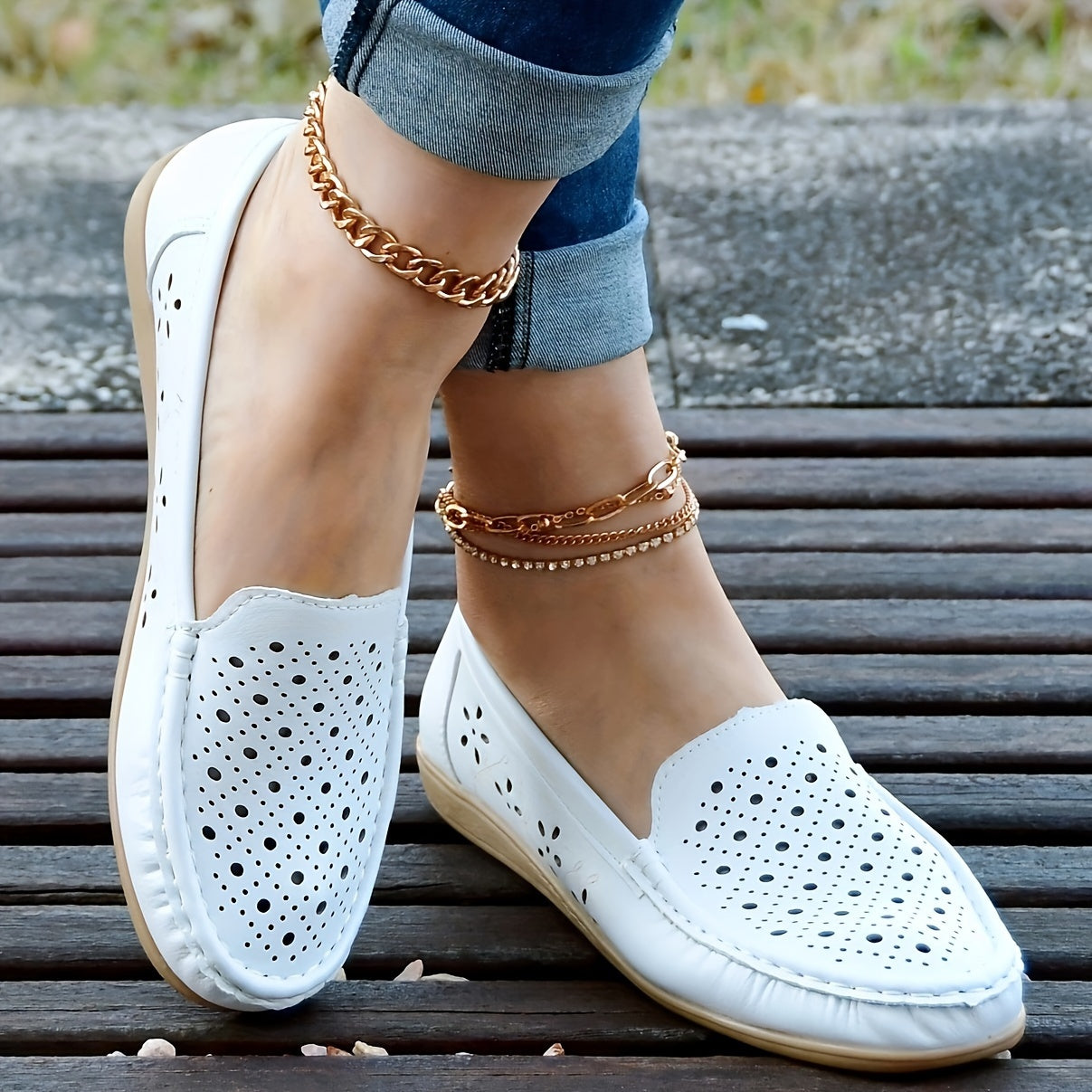 Damen Hollow Out Loafers, Atmungsaktive Slip-On Flache Schuhe
