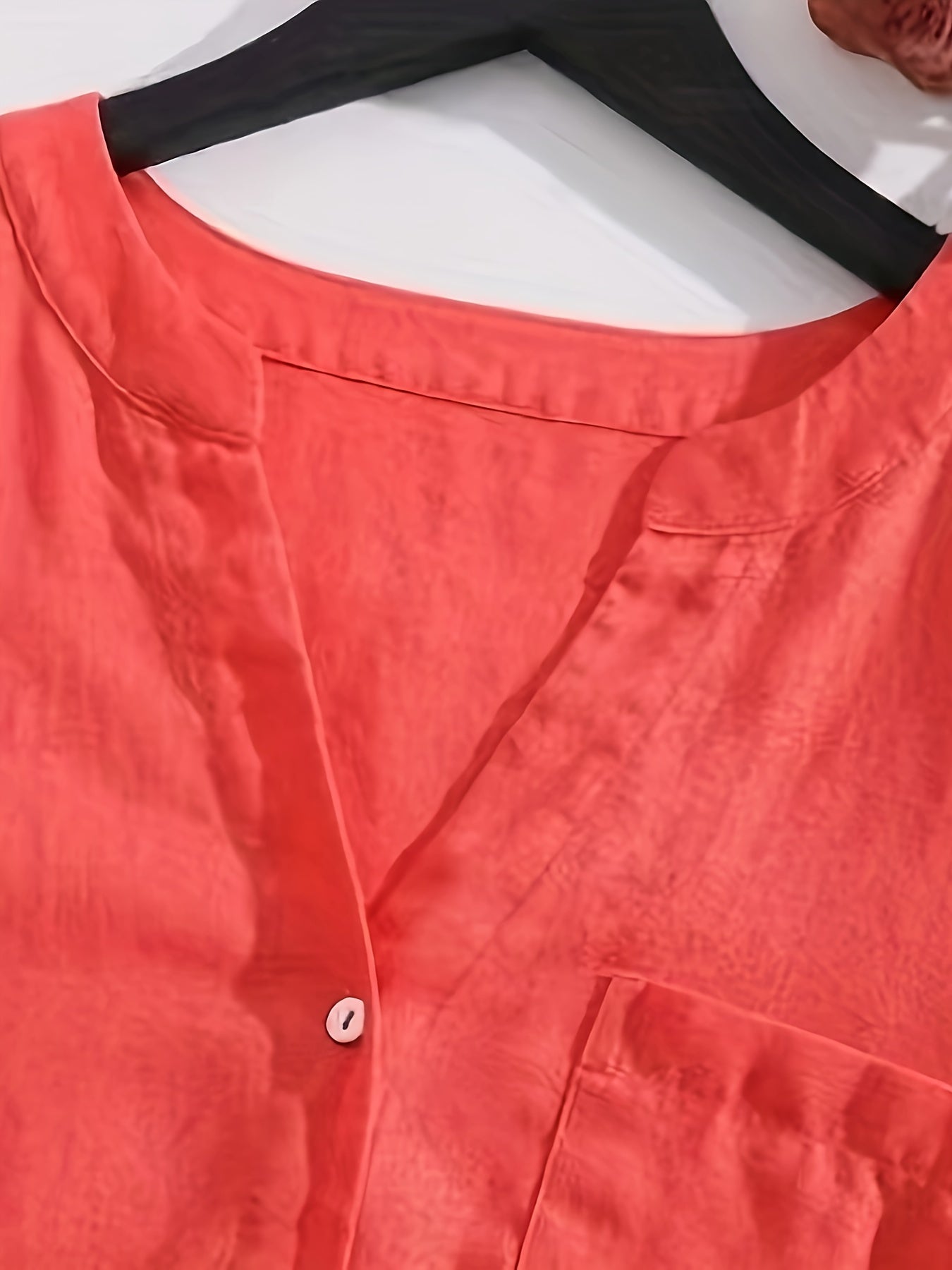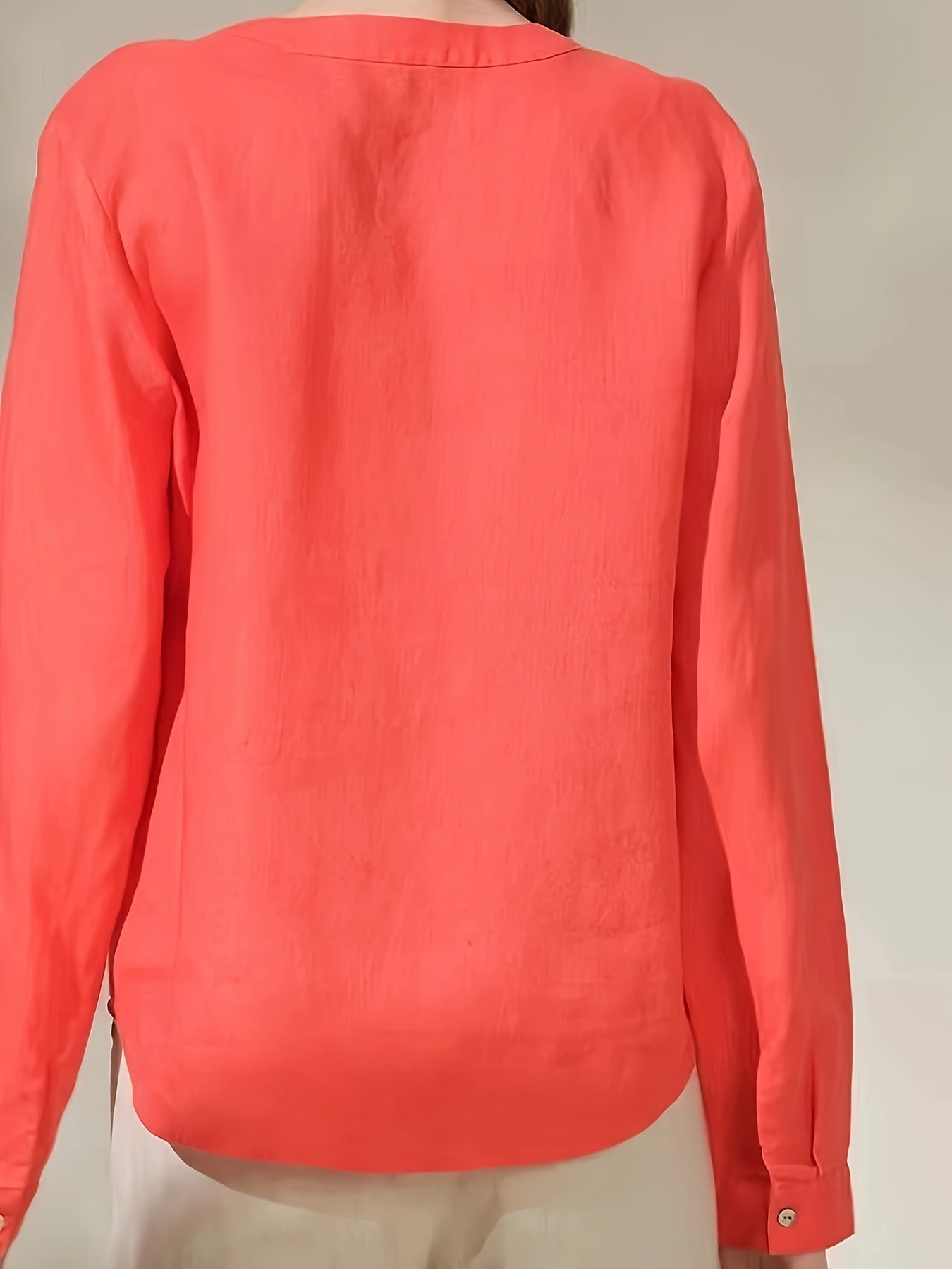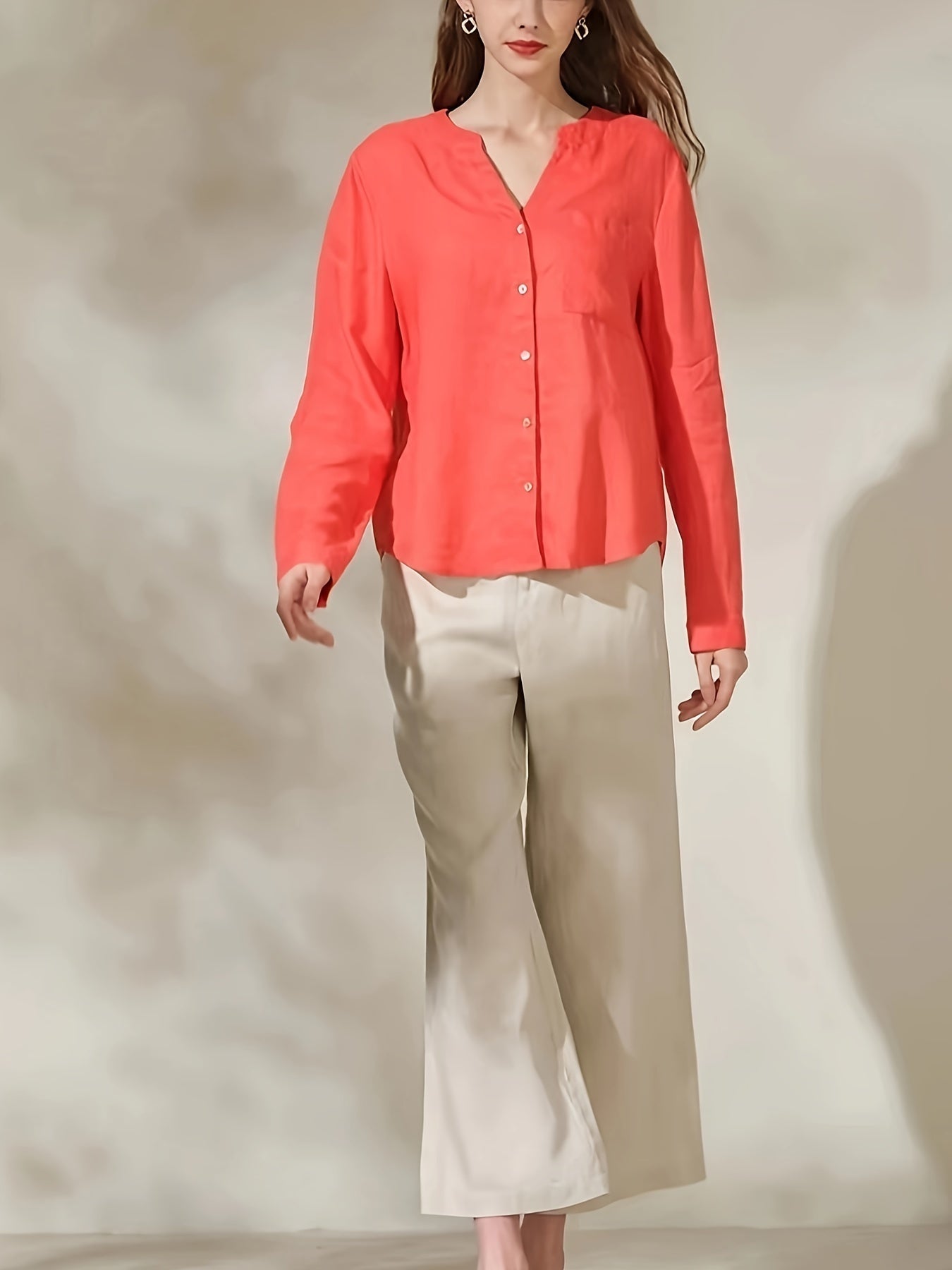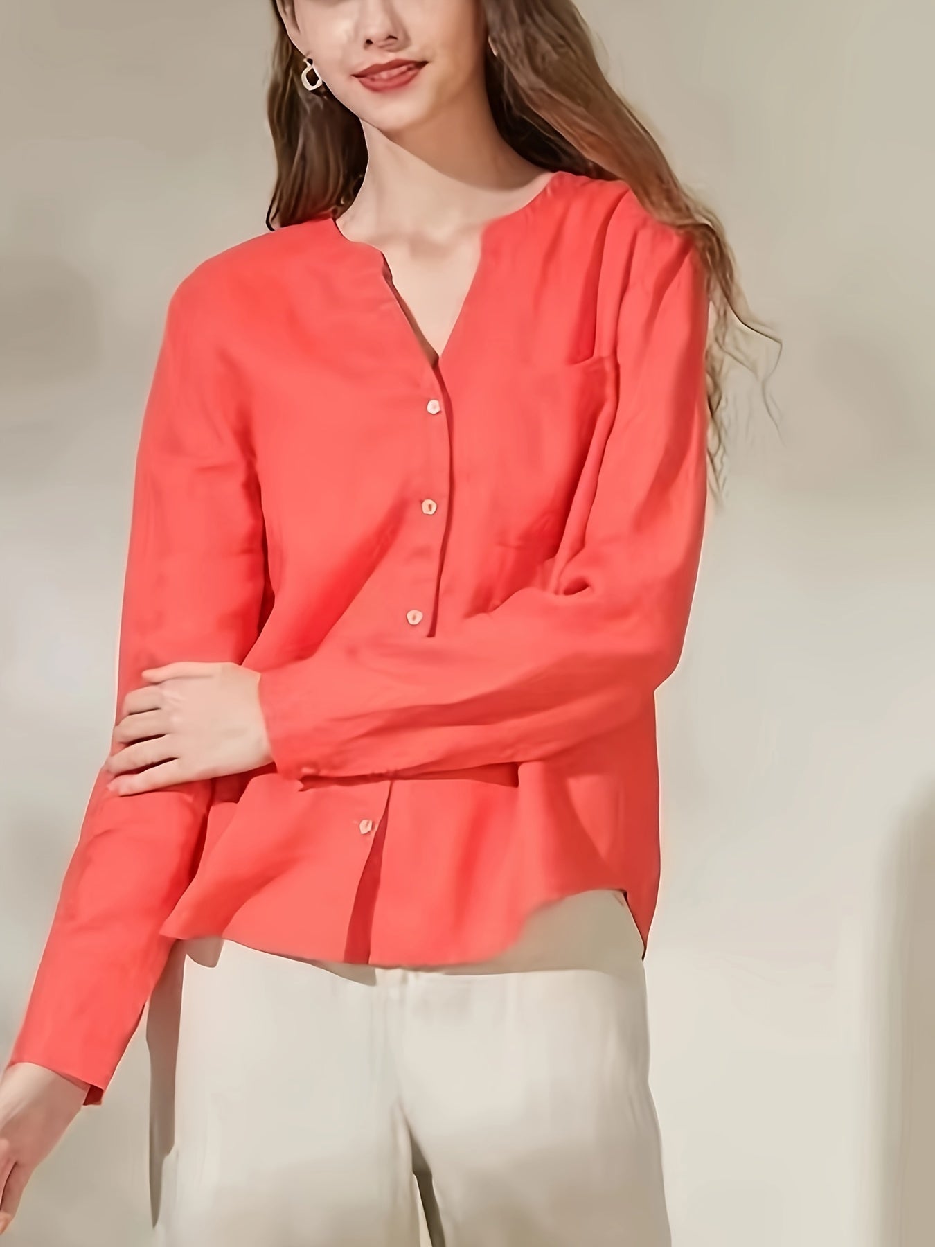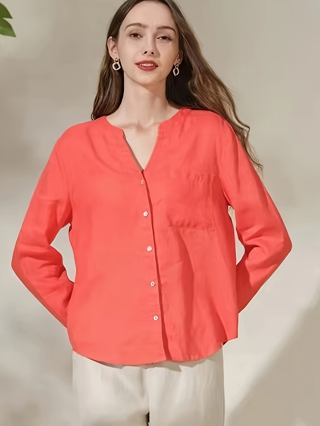 Damen Leinenhemd – V-Ausschnitt, Langarm, Leicht & Elegant