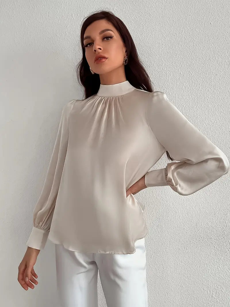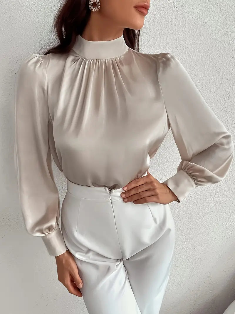 Damen Satinbluse – High-Neck mit Puffärmeln aus Polyester