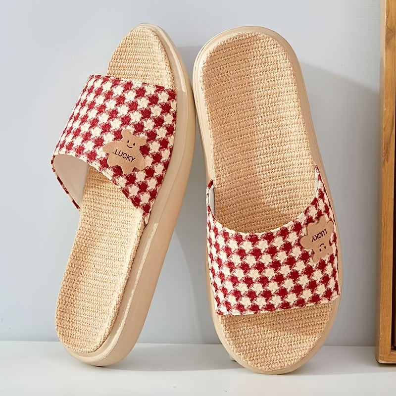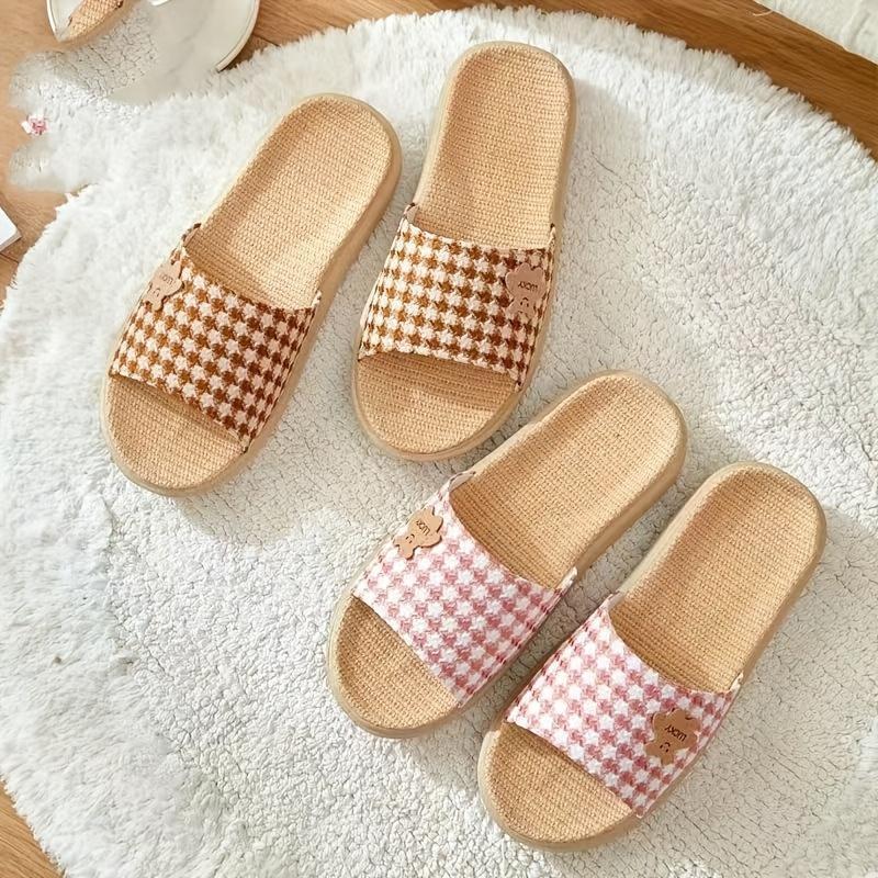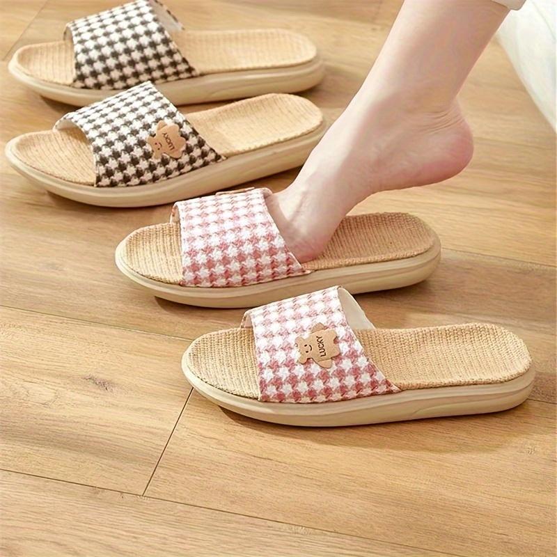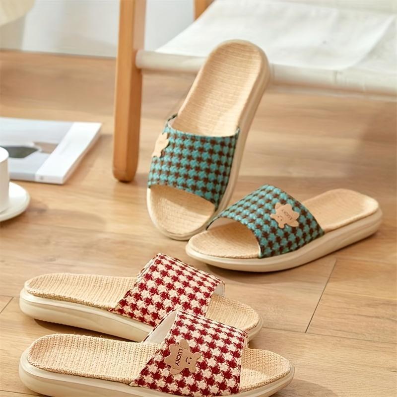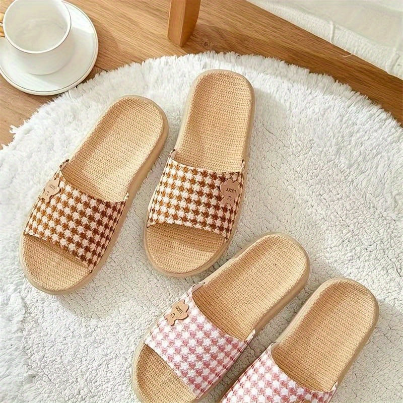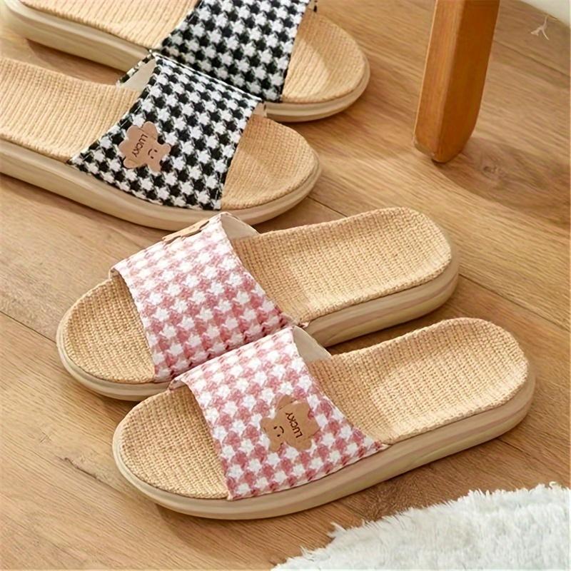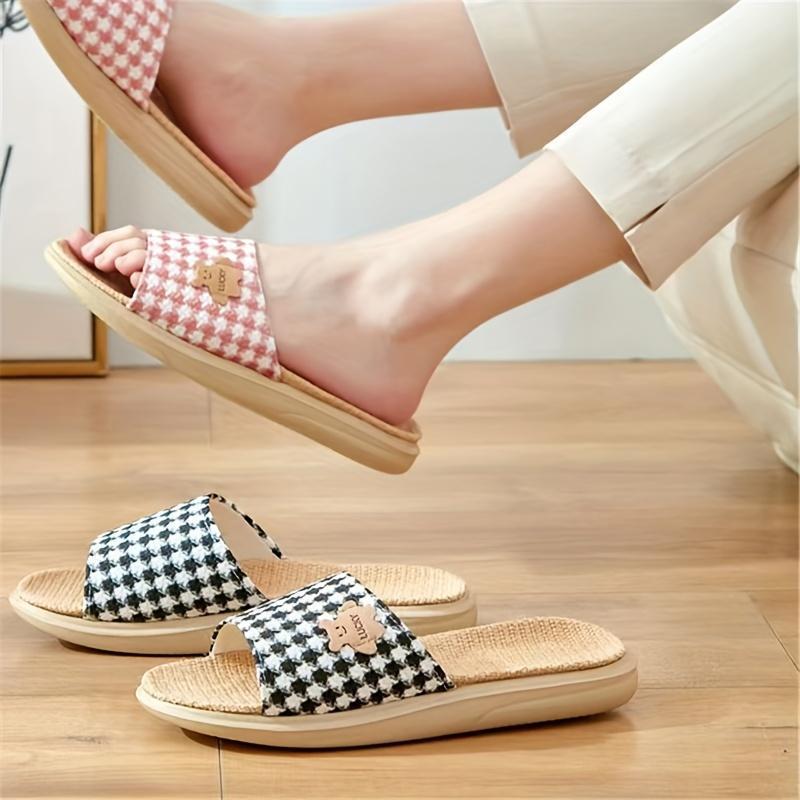 Damen Sommer Slipper – Leichte, Atmungsaktive Leinen-Hausschuhe mit Rutschfester