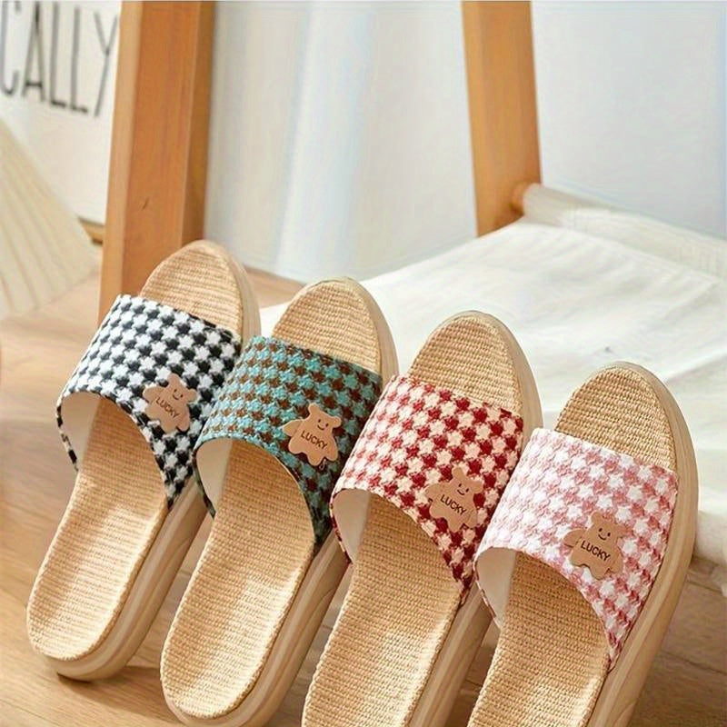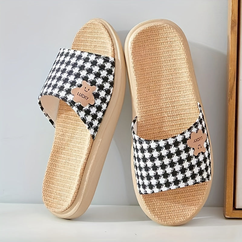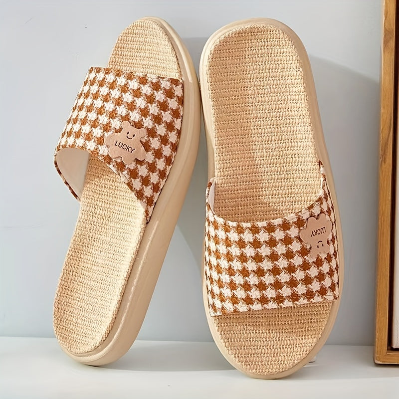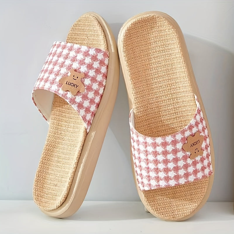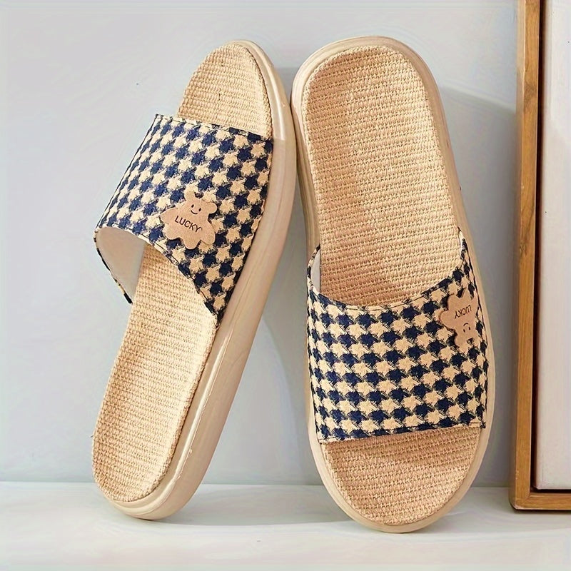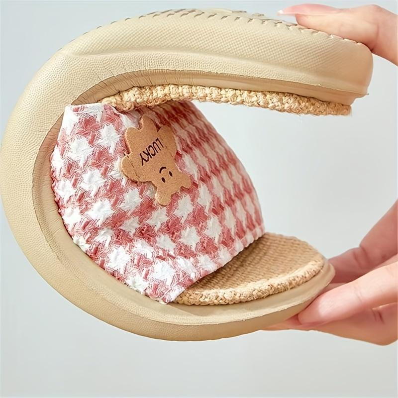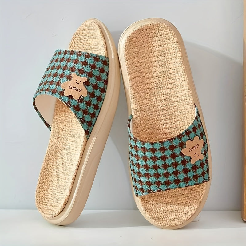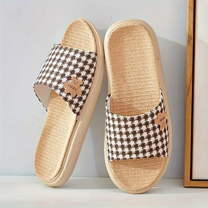 Damen Sommer Slipper – Leichte, Atmungsaktive Leinen-Hausschuhe mit Rutschfester