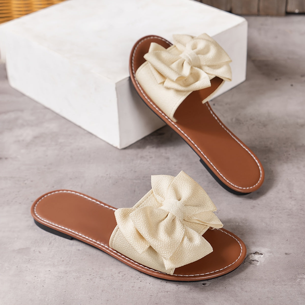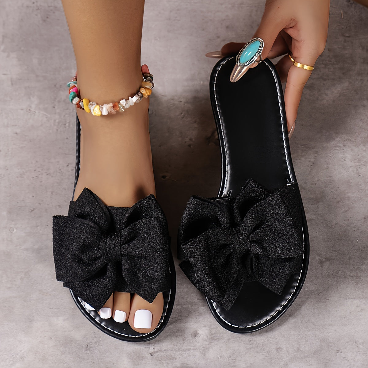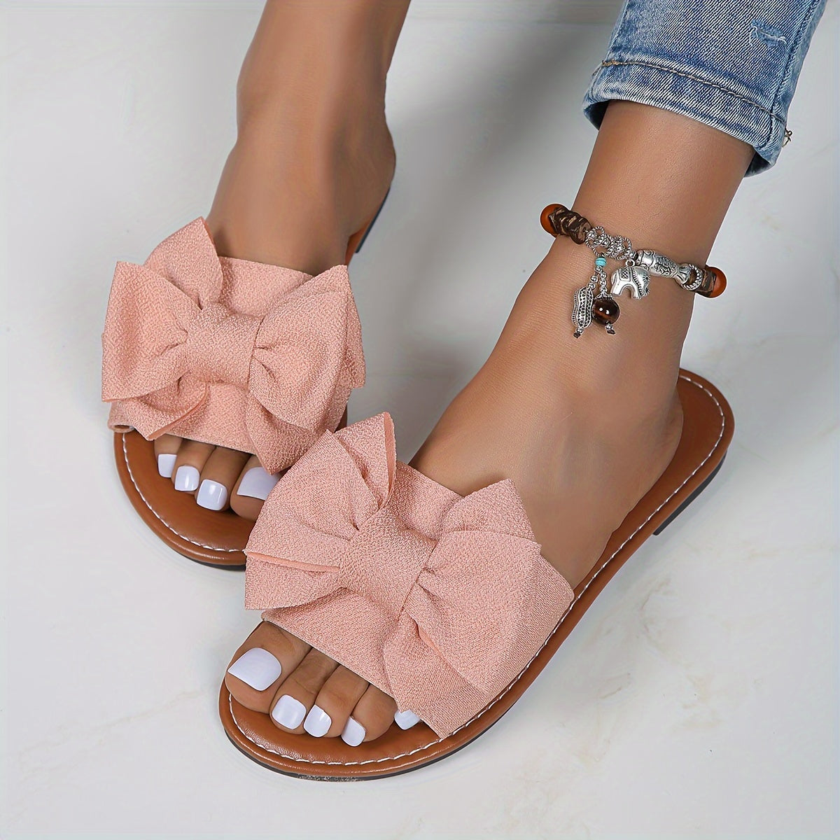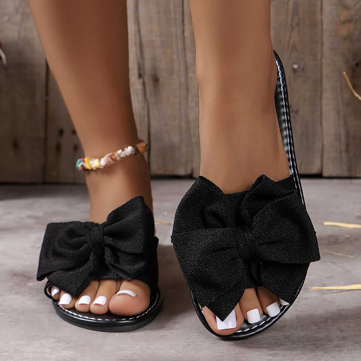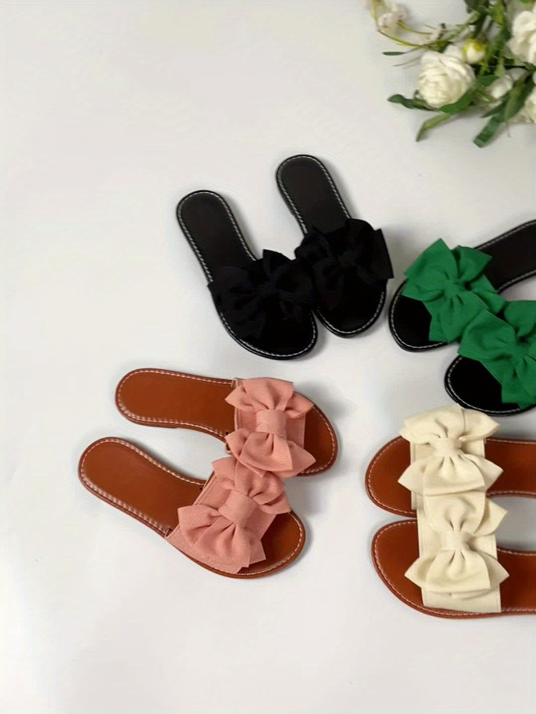 Damen Sommer Slipper – Leichte Flache Sandalen mit Schleife