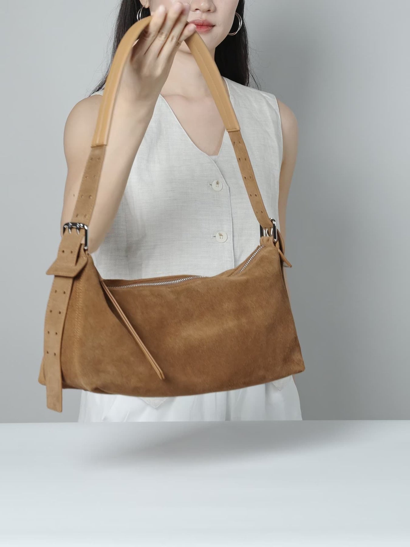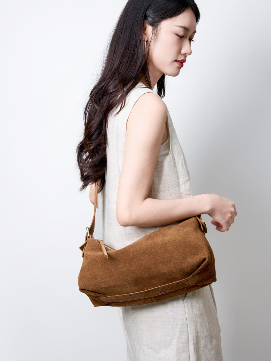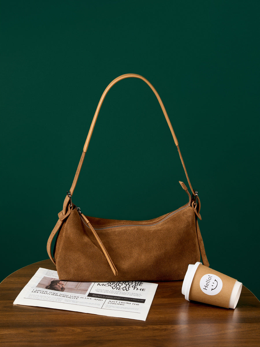 Elegante Schultertasche im minimalistischen Design – die Verbindung aus Wildleder-Optik und klaren Linien macht sie zu einem vielseitigen Begleiter. Perfekt für City-Looks, Büro und Freizeit mit kompaktem, aber funktionalem Stauraum.