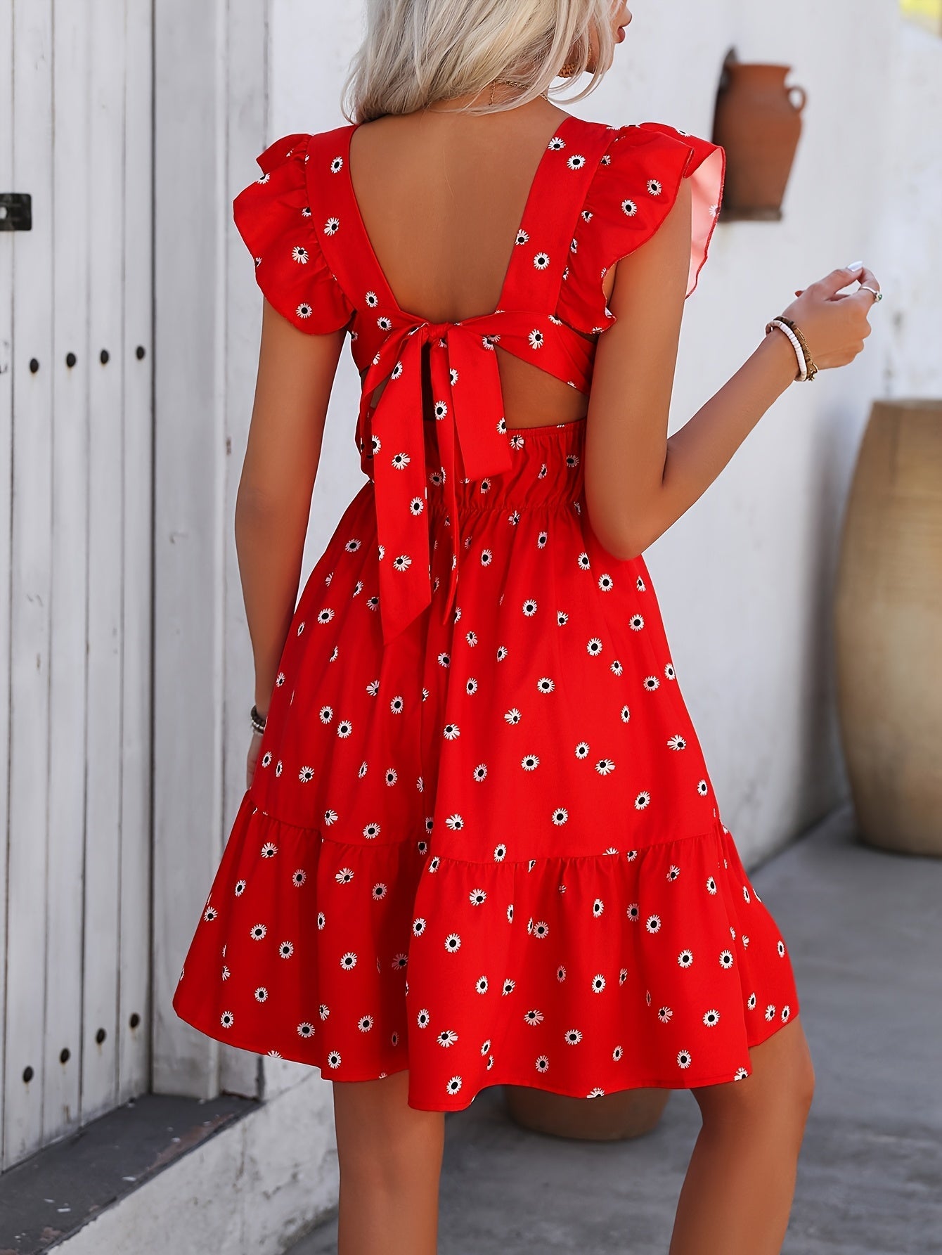 Elegantes A-Linien-Kleid – Blumenmuster, quadratischer Ausschnitt & Schleifendetail