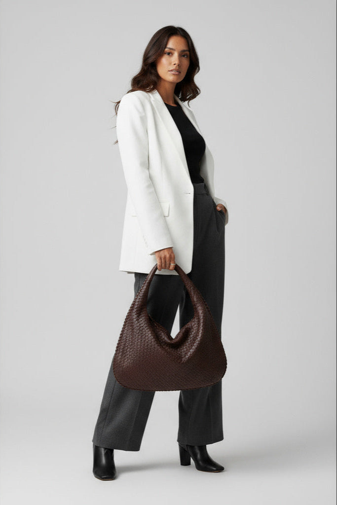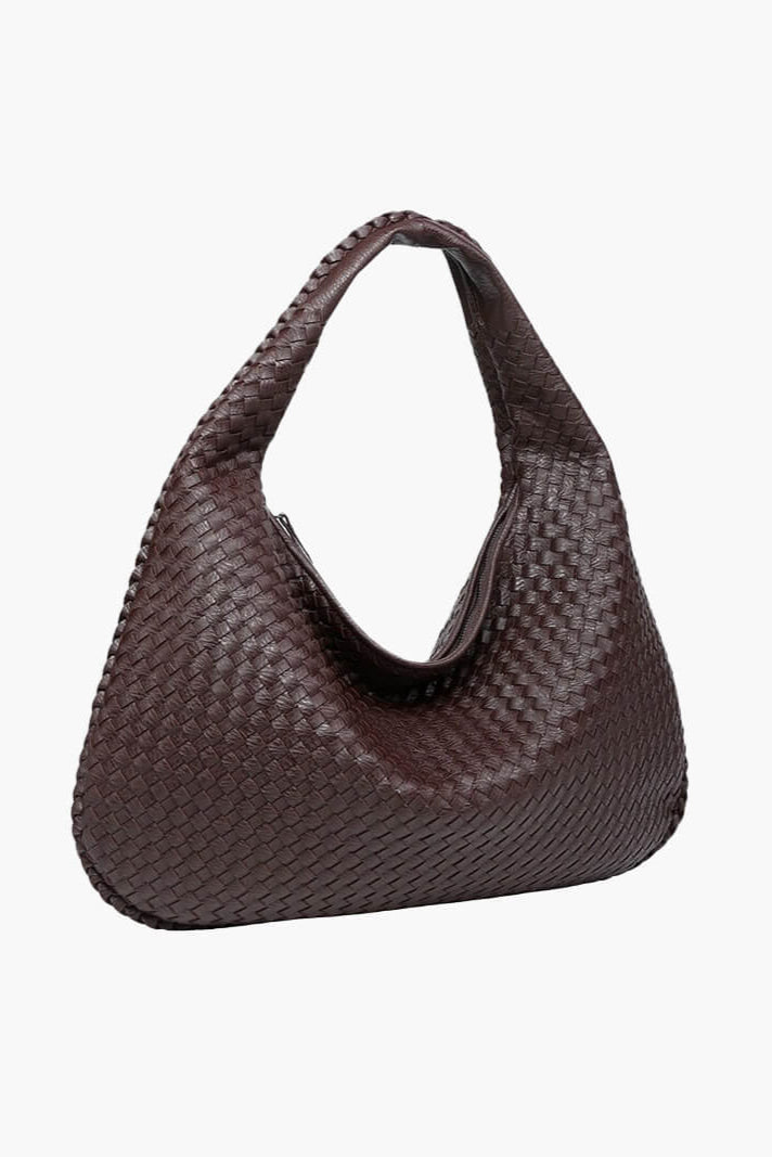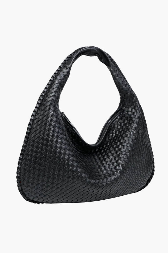 ESMAY hat eine runde Form und ein elegantes, geflochtenes Design. Die Tasche verfügt über ein großes Hauptfach mit Reißverschluss, zwei kleinere Innentaschen mit Reißverschluss und eine kleine offene Tasche. Diese vielseitige Tasche bietet viel Platz für alle Ihre Essentials.