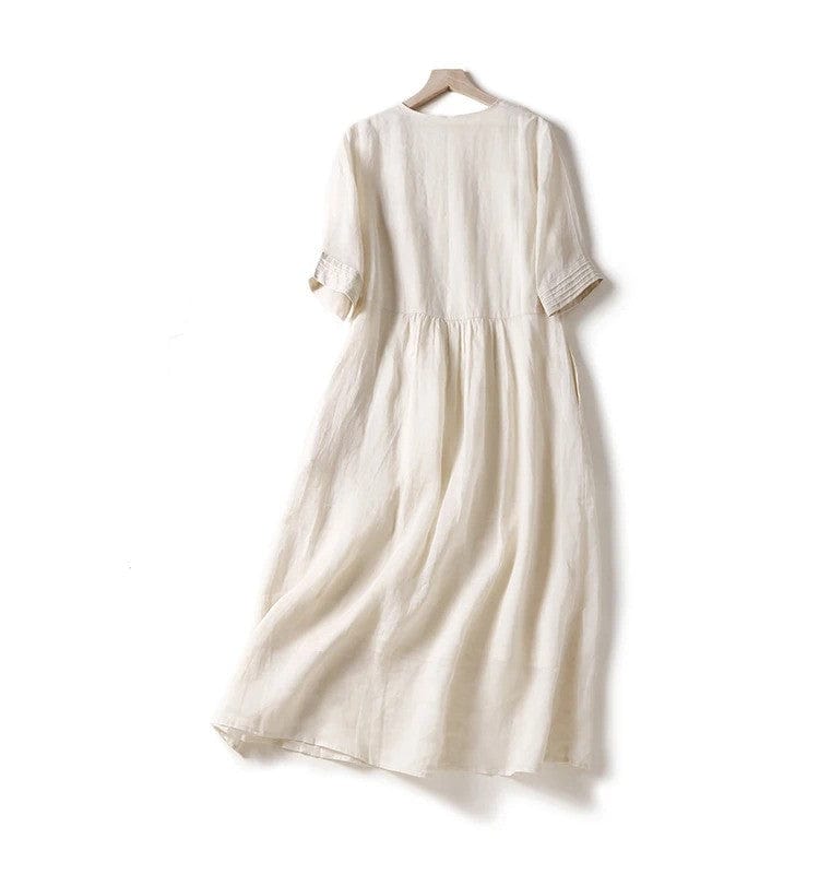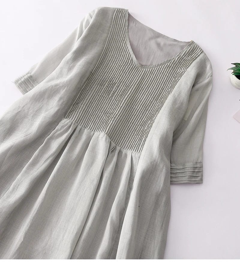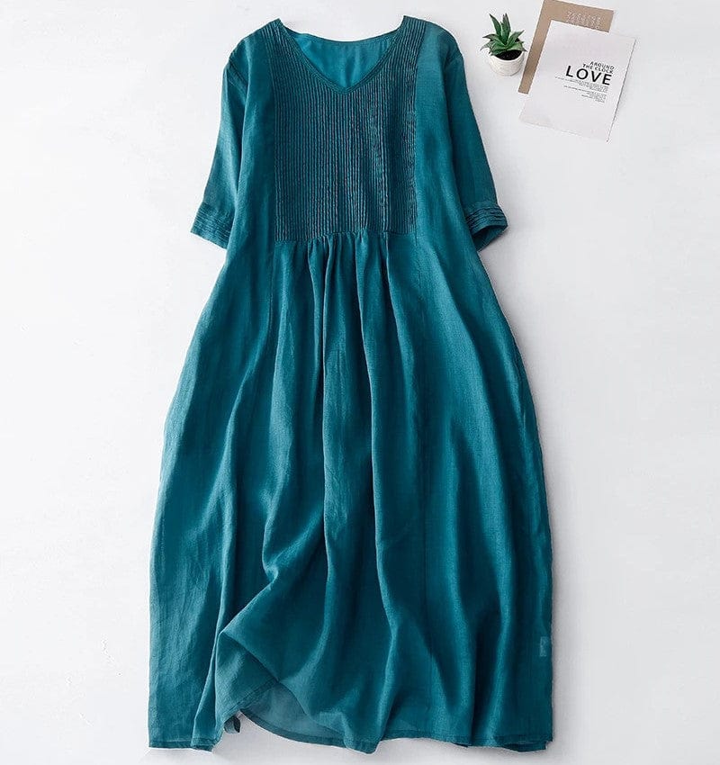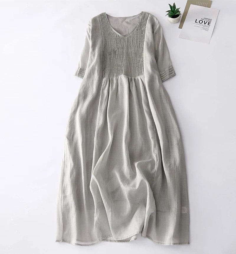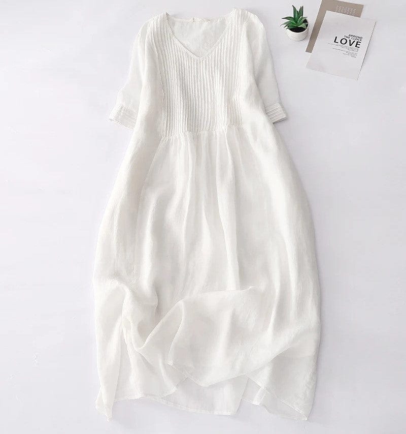 EVELIN - Lockeres Kleid mit V-Ausschnitt und dreiviertellangen Ärmeln