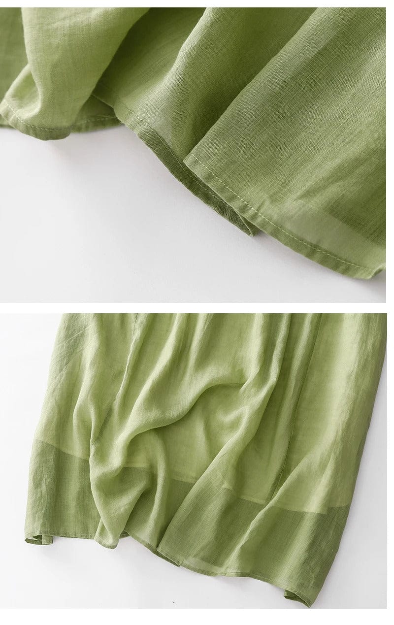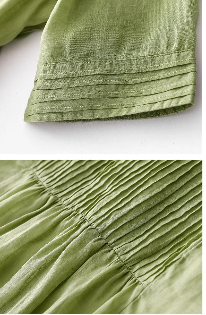 Das V-Ausschnitt-Design zeigt das Dekolleté und die Taschen an beiden Seiten sind praktisch, während die Rüschen von der vorderen Schulter bis zur Taille natürlich Ihre Körper-Schönheit zeigen. Die stilvolle Silhouette zeigt eine flauschige Atmosphäre und macht es leicht zu tragen. Es ist perfekt für den Sommer mit ausgezeichnetem Kühlungseffekt, Schweißabsorption und schneller Trocknung.