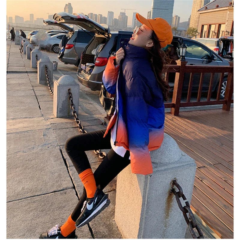 Gehen Sie nie aus der Mode mit unserer FAITH - Regenbogen-Farbverlauf Tie-Dye-Baumwolljacke! Sie ist super weich und hat einen bequemen Stoff, der perfekt für den täglichen Gebrauch ist, um Sie den ganzen Tag über warm zu halten. Diese Jacke wird Sie für alle Ihre Ausflüge im Winter oder bei kaltem oder windigem Wetter warm halten. Sie sieht aus wie eine koreanische Daunenjacke, aber sie wird Sie sicher warm halten und vor dem Wind schützen.