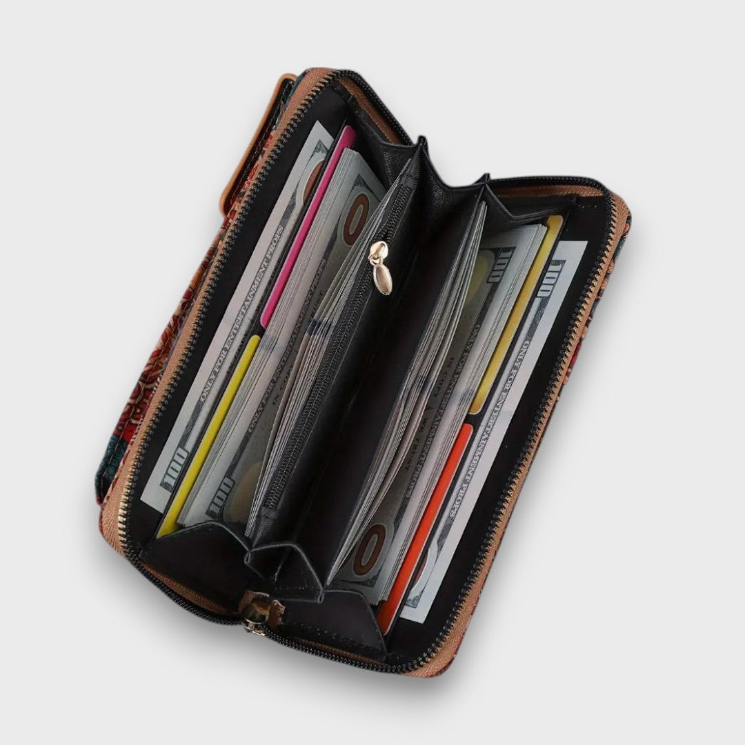 Floretta bringt verspielten Boho-Charme in deinen Alltag. Ihr lebendiges Blumenmuster trifft auf ein kompaktes Format, das Platz für alles Wesentliche bietet – ob beim Stadtbummel, auf Reisen oder unterwegs zum Café. Dank des verstellbaren Riemens lässt sie sich bequem quer tragen oder stilvoll als Clutch verwenden.