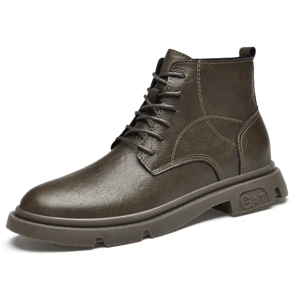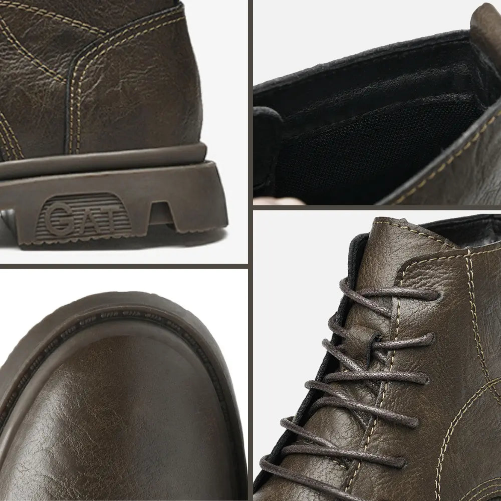 Wir stellen die GAT-Militärstiefel vor. Diese mit Präzision aus hochwertigem Rindsleder gefertigten Stiefel strahlen nicht nur eine robuste, militärische Ästhetik aus, sondern sorgen auch für eine diskrete Erhöhung um 8 cm, die Ihr Selbstbewusstsein und Ihre Statur stärkt. Erhöhen Sie Ihren Stil, erobern Sie jedes Terrain und stehen Sie aufrecht mit den GAT-Stiefeln!