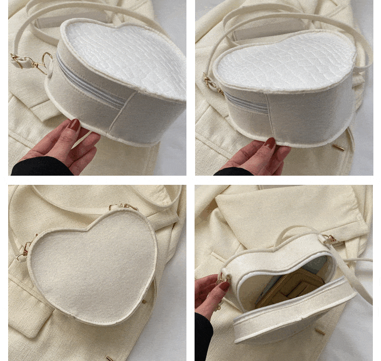 Einführung der GIA - Umhängetasche mit Herzdesign, ein perfektes Accessoire für ein romantisches Date. Ihr charmantes herzförmiges Design und die bestickten Falten verleihen ihr ein elegantes Aussehen und machen sie zu einem durchdachten Geschenk für Ihre Liebsten. Diese Handtasche ist nicht nur modisch, sondern auch praktisch, mit ausreichend Platz für die Essentials bei jeder Gelegenheit.
