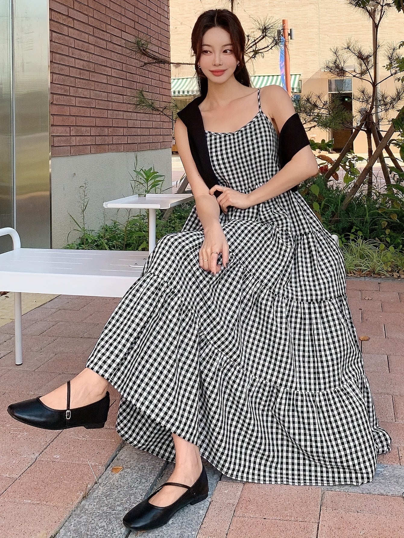 Genießen Sie mühelosen Sommerstil mit diesem Grid Print Spaghetti-Träger A-Linien Cami Kleid. Perfekt für Liebhaber von Weiß und Schwarz, ist dieses leichte und atmungsaktive Polyesterkleid ideal für warmes Wetter.