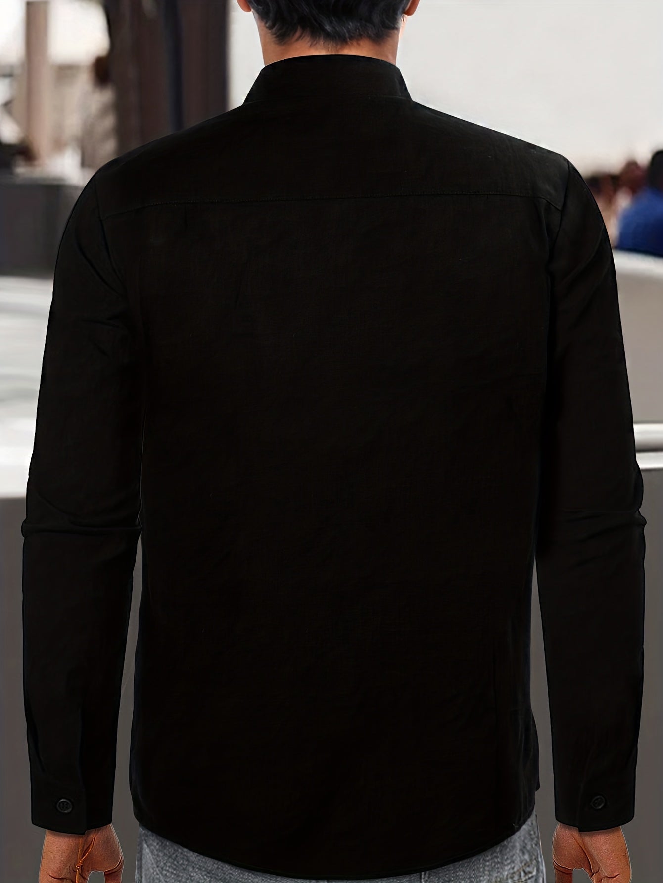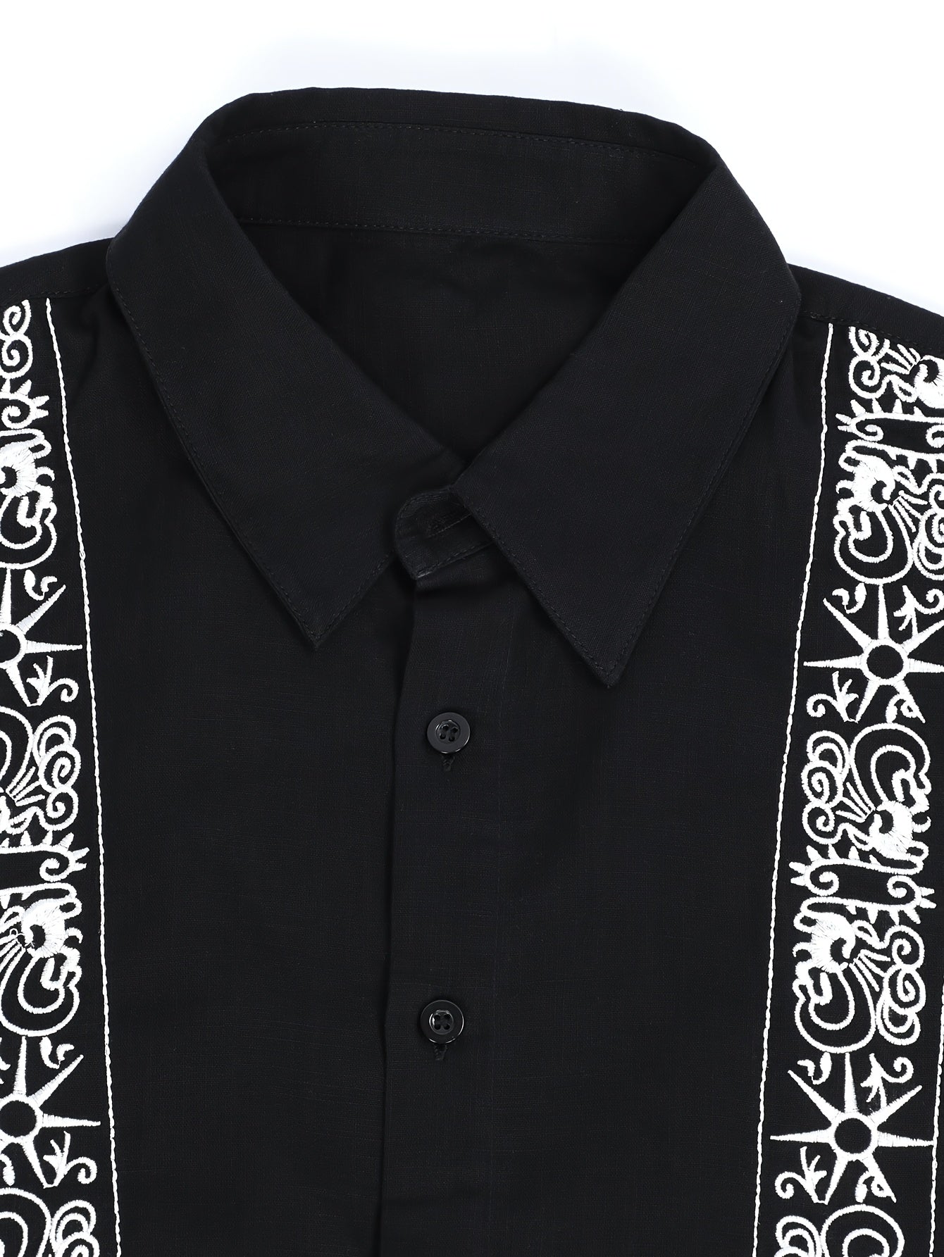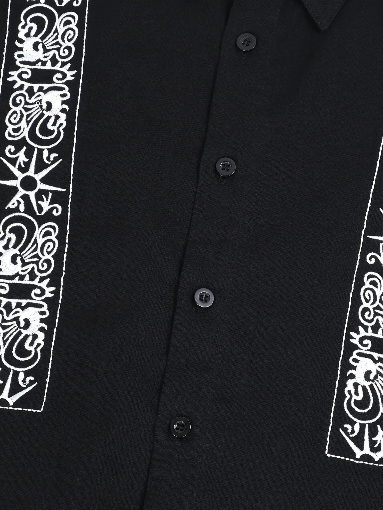 Herren Leinenhemd – Bestickt Baumwolle-Leinen-Mischung, Regular Fit, Langarm