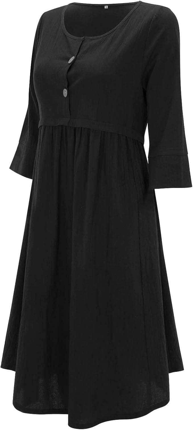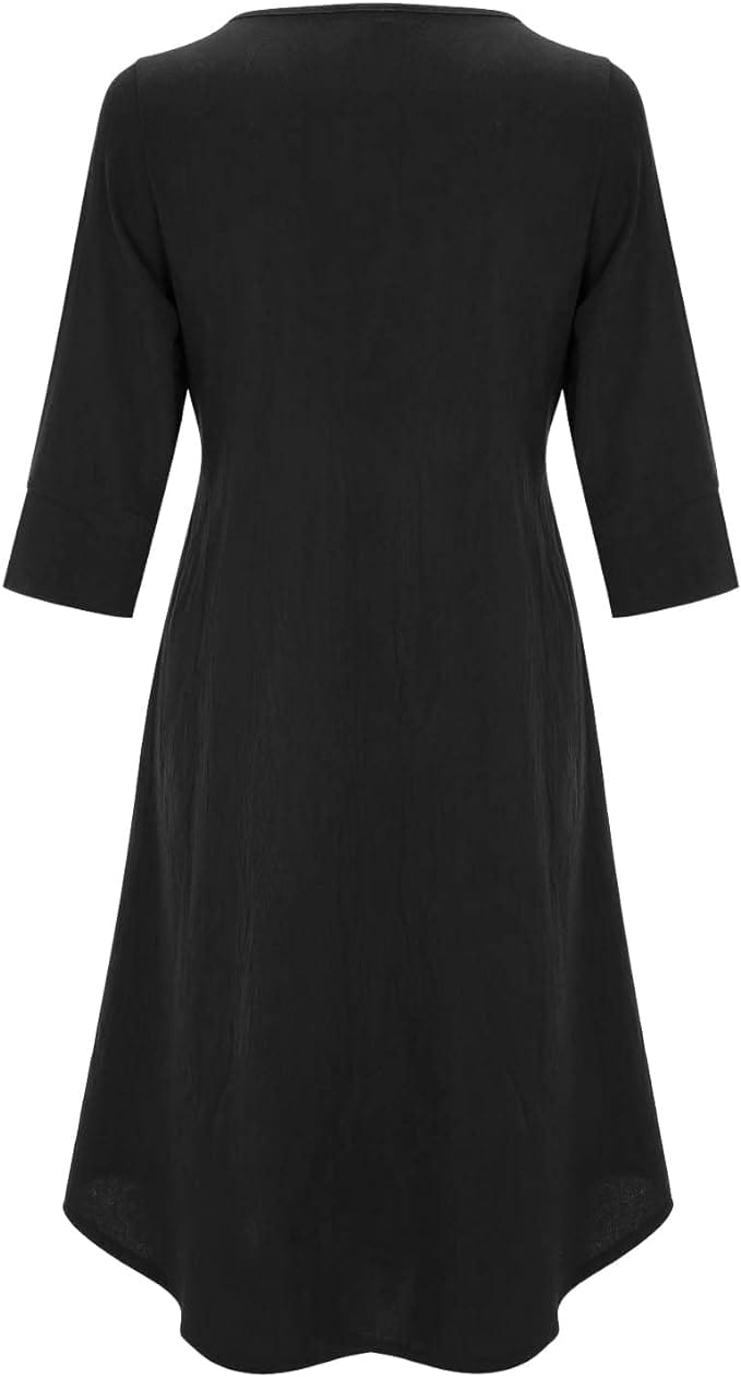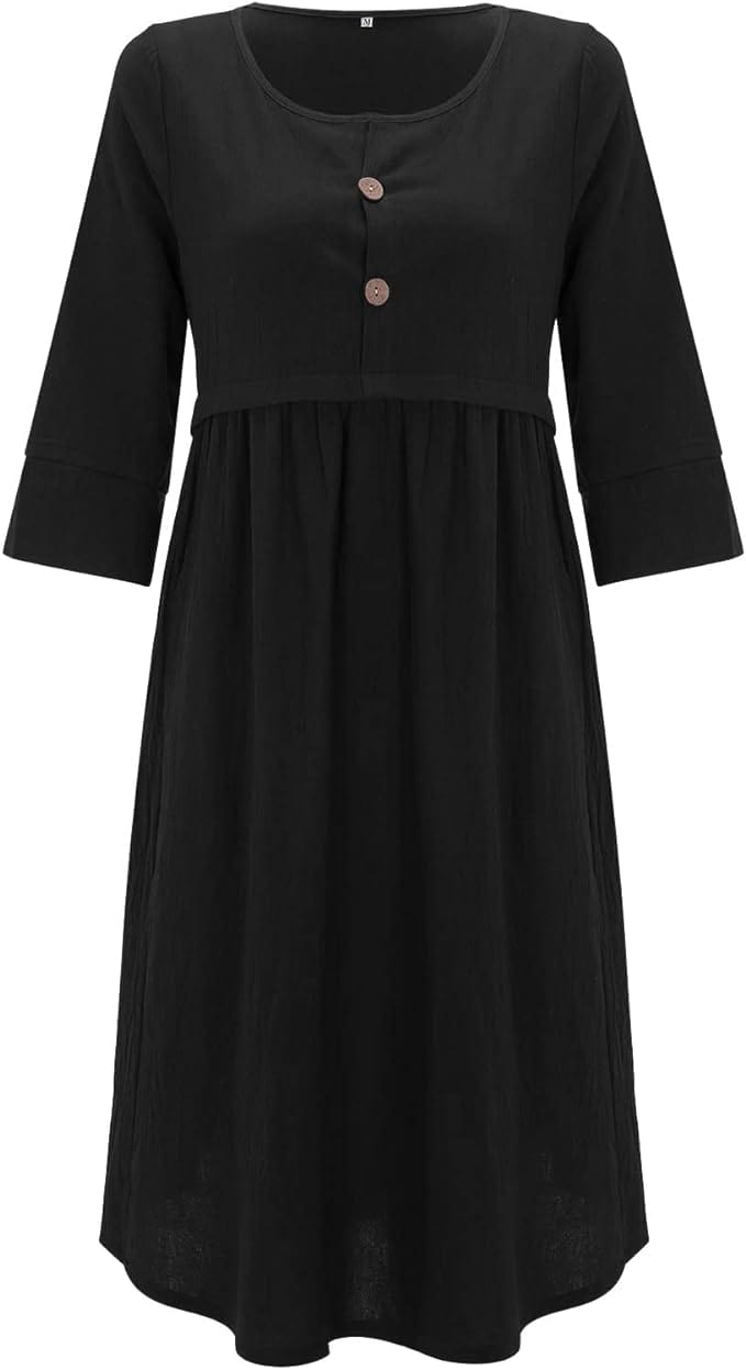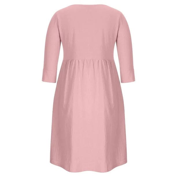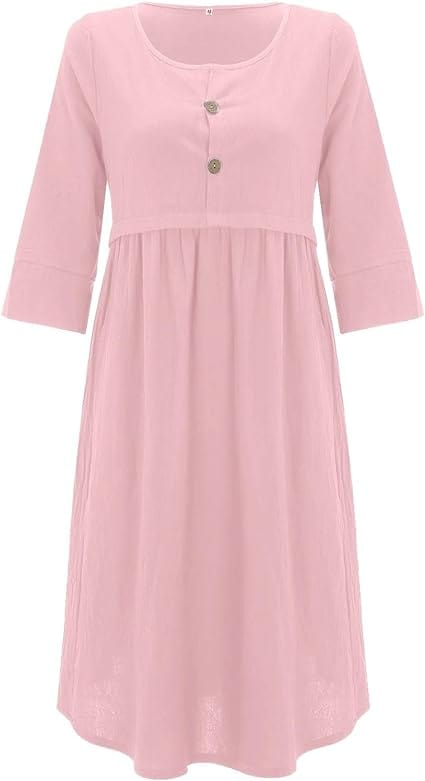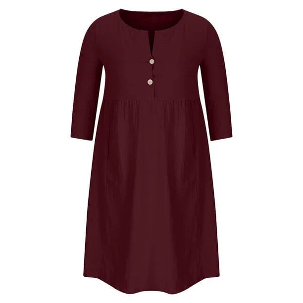 Kreieren Sie einen hübschen Sommerlook mit dieser IRMENGARD - Kleidung in Übergröße, Kleider! Ein Rundhals-Knopf-Taschen-Baumwollleinenärmel mit einfarbigem Kleid, das für viele Anlässe geeignet ist, und das einfache Design macht die langweilige Jahreszeit bunt und interessant. Öffnen Sie den Kleiderschrank und ziehen Sie dieses hübsche Kleid an. Sie werden sich den ganzen Tag über entspannt fühlen!