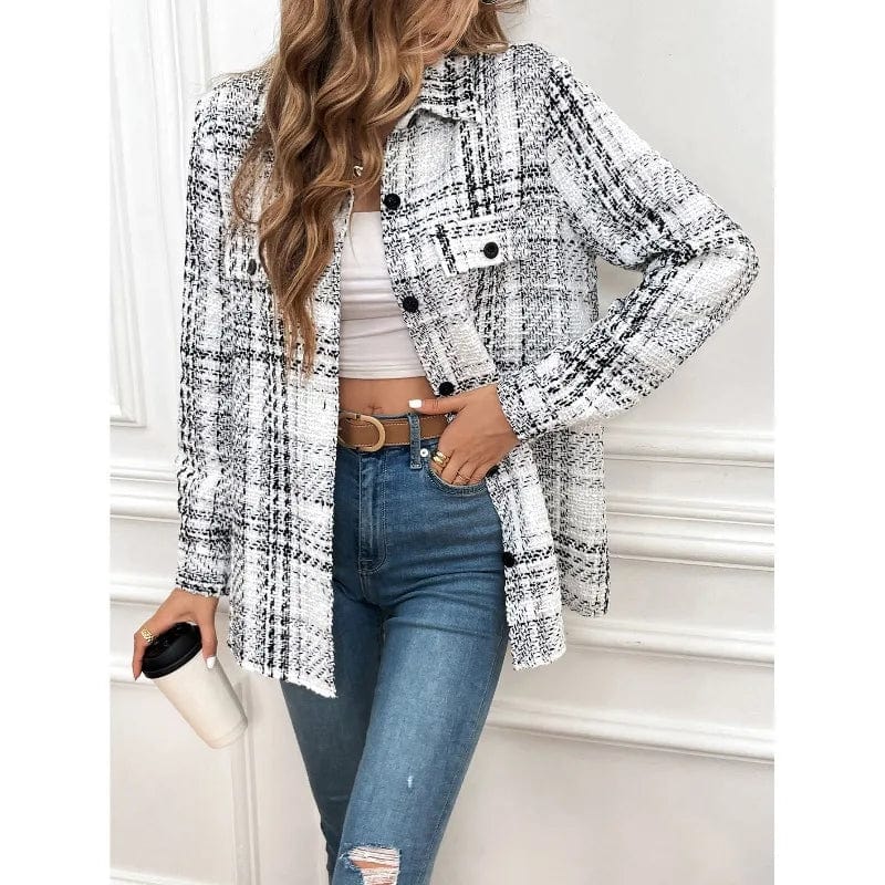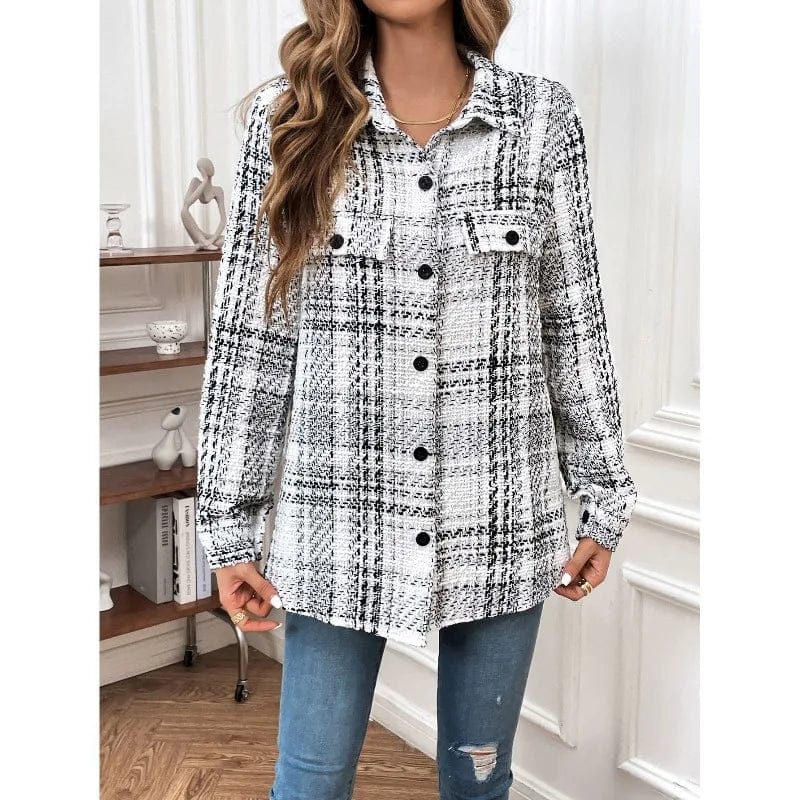 Kreieren Sie einen modischen Look in kaltem Wetter mit diesem JANNA - Gestreifter Karo-Cardigan mit Knöpfen und Tasche! Er bietet ein entspanntes und komfortables Trageerlebnis, das es Ihnen ermöglicht, sich den ganzen Tag frei zu bewegen. Dieser Cardigan fühlt sich wirklich, wirklich gut an. Und das feste Fleece ermöglicht es Ihnen, ihn auf vielfältige Weise und an verschiedenen Orten zu tragen. Er bietet die Schönheit eines Pullovers und die Gemütlichkeit von Fleece. Außerdem ist er für eine lockere Passform geschnitten.