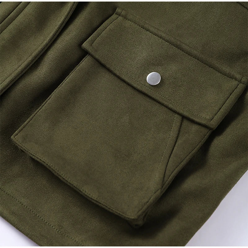 Diese kunstwildleder jacke bringt cleanen minimalismus und city-chic zusammen. der weiche velourslook fühlt sich angenehm an und verleiht jedem outfit sofort struktur. praktische taschen und ein stabiler reißverschluss machen sie alltagstauglich – perfekt zu jeans, boots oder office-basics.