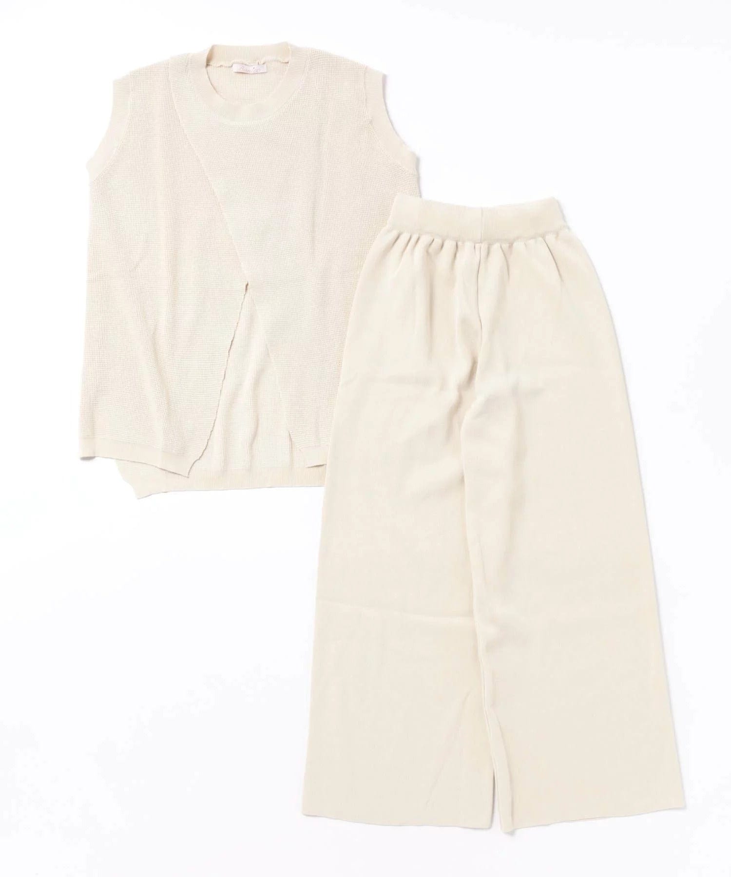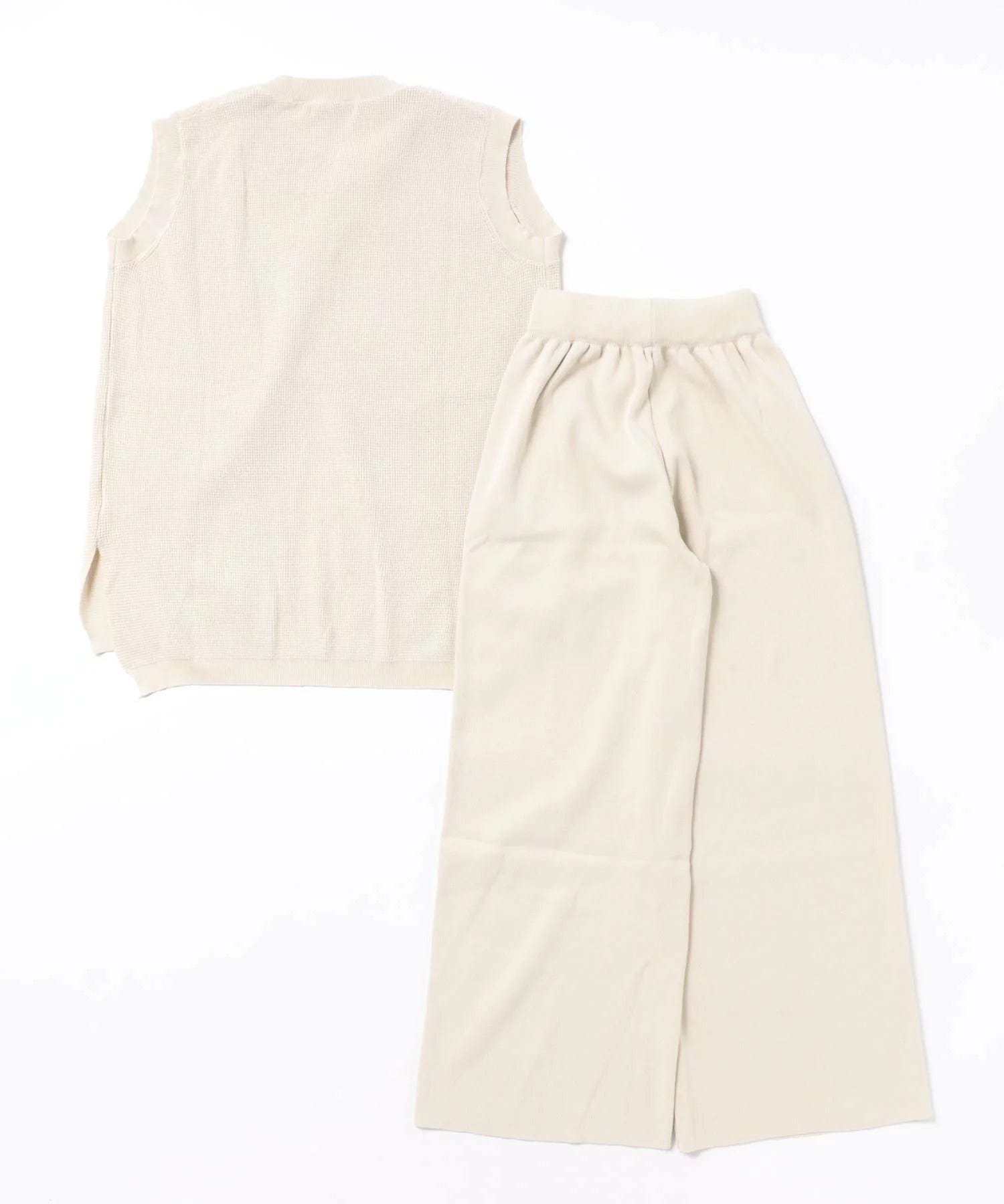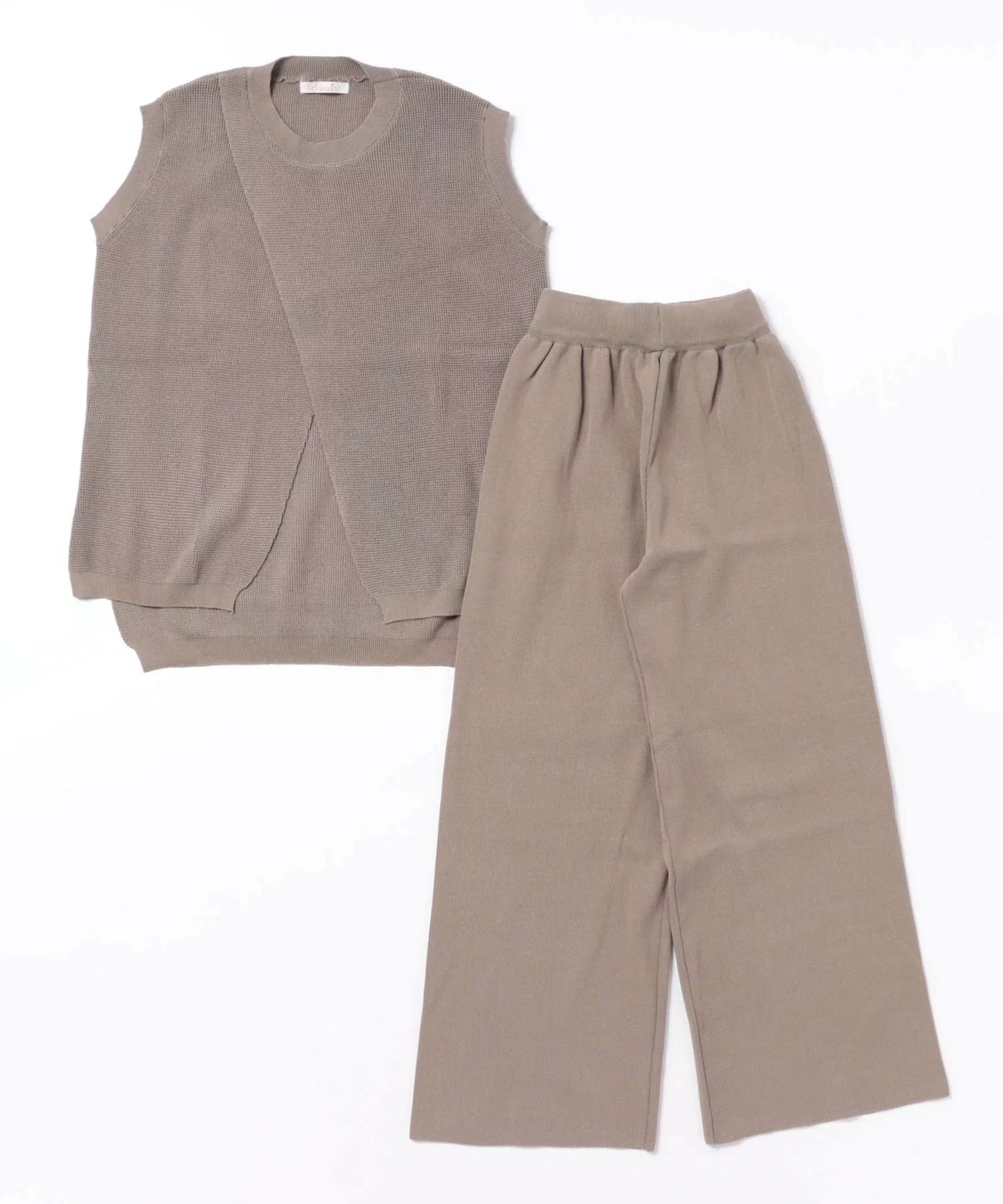 Gefertigt aus einem gestrickten Stoff mit großer Dehnbarkeit, ist das Set sowohl angenehm als auch langlebig. Es verfügt über ein ärmelloses Top mit Rundhalsausschnitt und geteiltem Design, das einen schicken Look verleiht. Die Hose mit elastischem Bund sorgt für eine schmeichelhafte und sichere Passform und ermöglicht Bewegungsfreiheit, sodass Sie sich den ganzen Tag lang wohl fühlen. Ein Set, das Ihre Figur mit einem eleganten und modernen Schnitt betont und Ihnen Selbstbewusstsein verleiht.