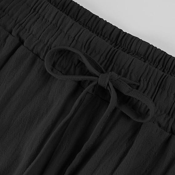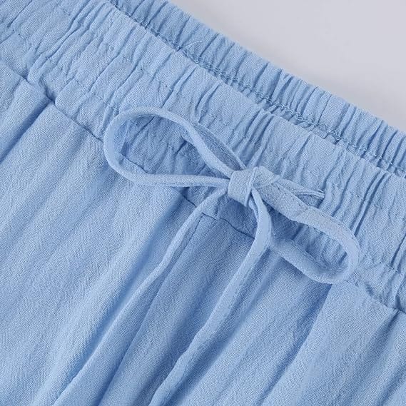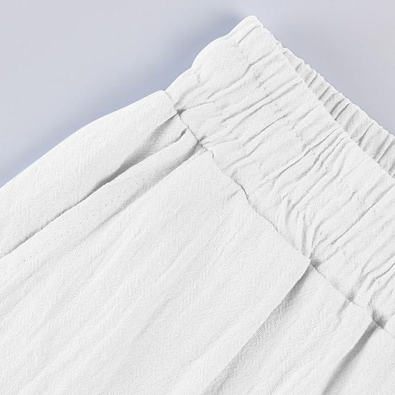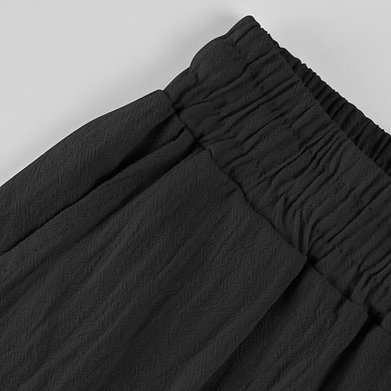 Sie besteht aus einer opulenten Kombination aus Polyester, Baumwolle und Leinen, die sowohl Komfort als auch Atmungsaktivität gewährleisten. Das schlichte Design macht die langweilige Jahreszeit bunt und interessant. Der Bund ist elastisch und eine großartige Möglichkeit, einen einfachen und minimalistischen Stil zu umarmen. Sie ist sehr locker und weich zu tragen, bietet ein großartiges Erlebnis und kann das ganze Jahr über getragen werden.