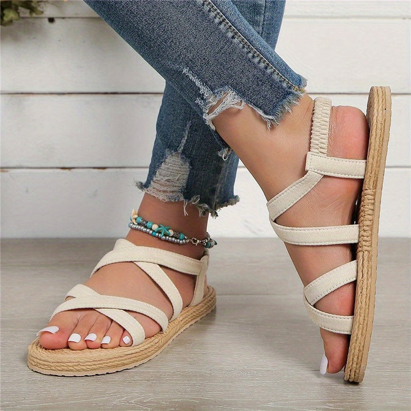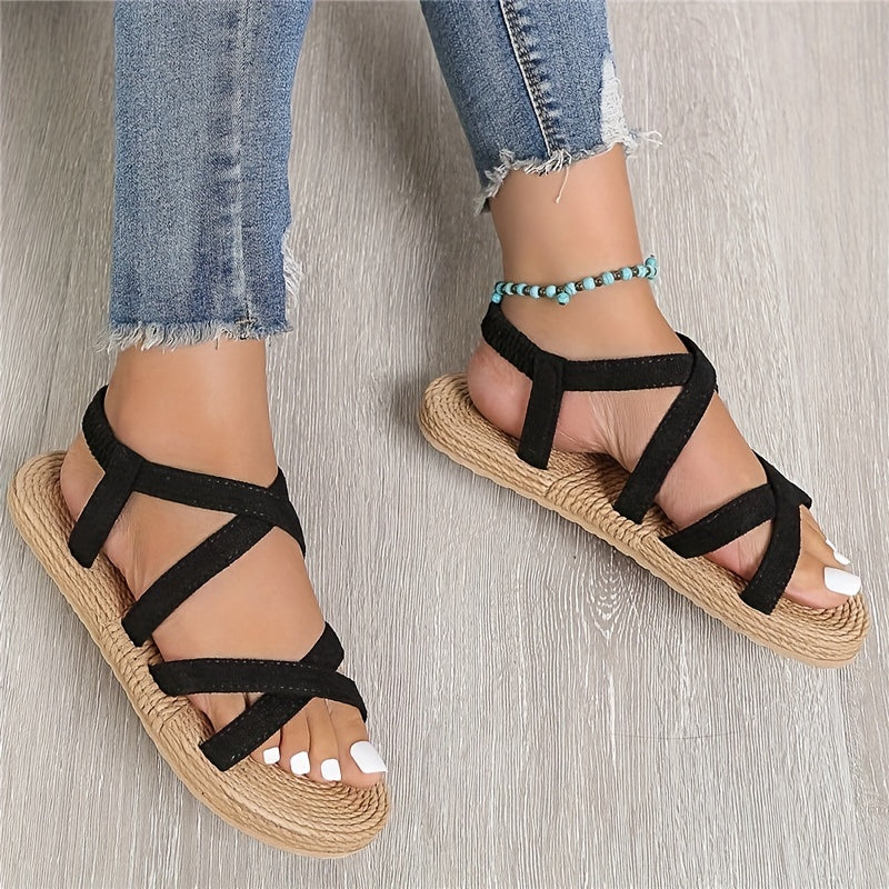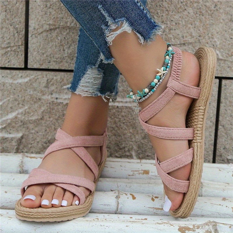 Kreuzriemen Sandalen, Elastische Riemen, Offene Zehen