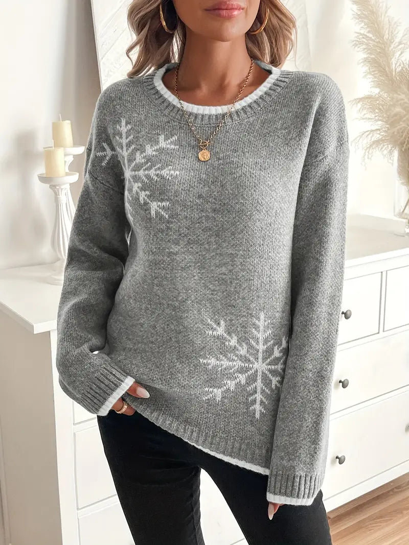 Bleiben Sie diese Saison warm und stilvoll mit unserem Langarmpullover mit Schneeflockenmuster. Dieser Pullover mit klassischem Rundhalsausschnitt und kuscheligem Stoff ist perfekt für Herbst und Winter. Das bezaubernde Schneeflockenmuster verleiht eine festliche Note und macht ihn ideal für Feiertagstreffen oder lässige Alltagskleidung. Kombinieren Sie ihn mit Jeans oder Leggings für einen bequemen, saisonalen Look. Dieser weiche und leicht zu tragende Pullover ist ein Muss für Ihre Wintergarderobe!