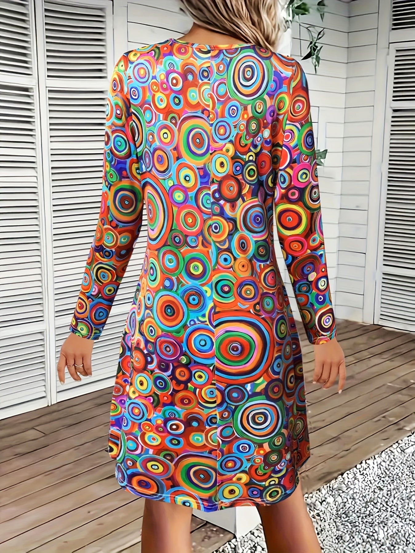 Lässiges Farbiges Kleid – V-Ausschnitt, Langarm, Locker & Bequem für Frühling