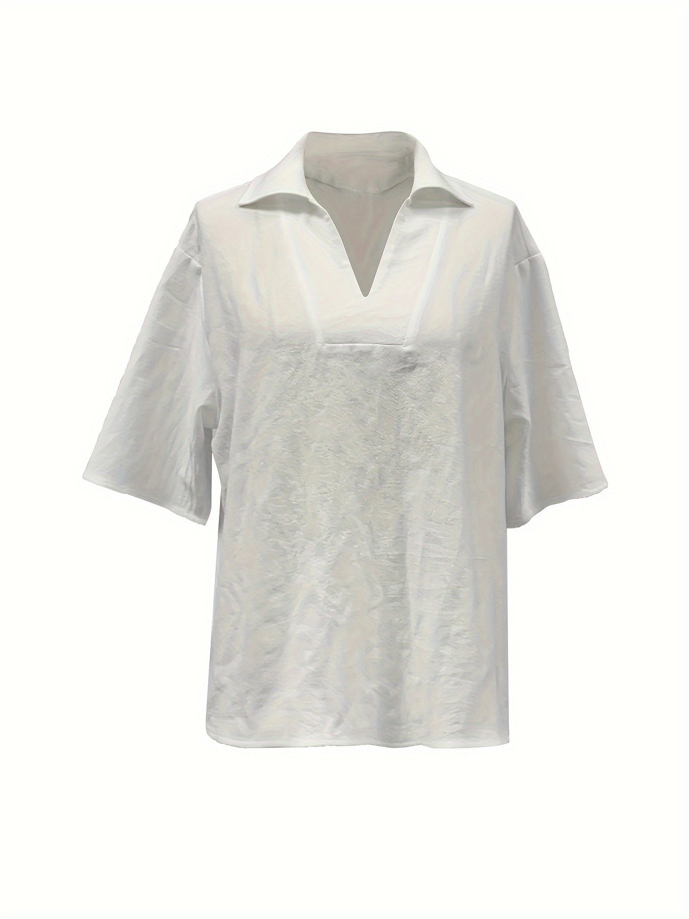 Leinenbluse V-Ausschnitt – Weiße Sommerbluse, Locker & Atmungsaktiv