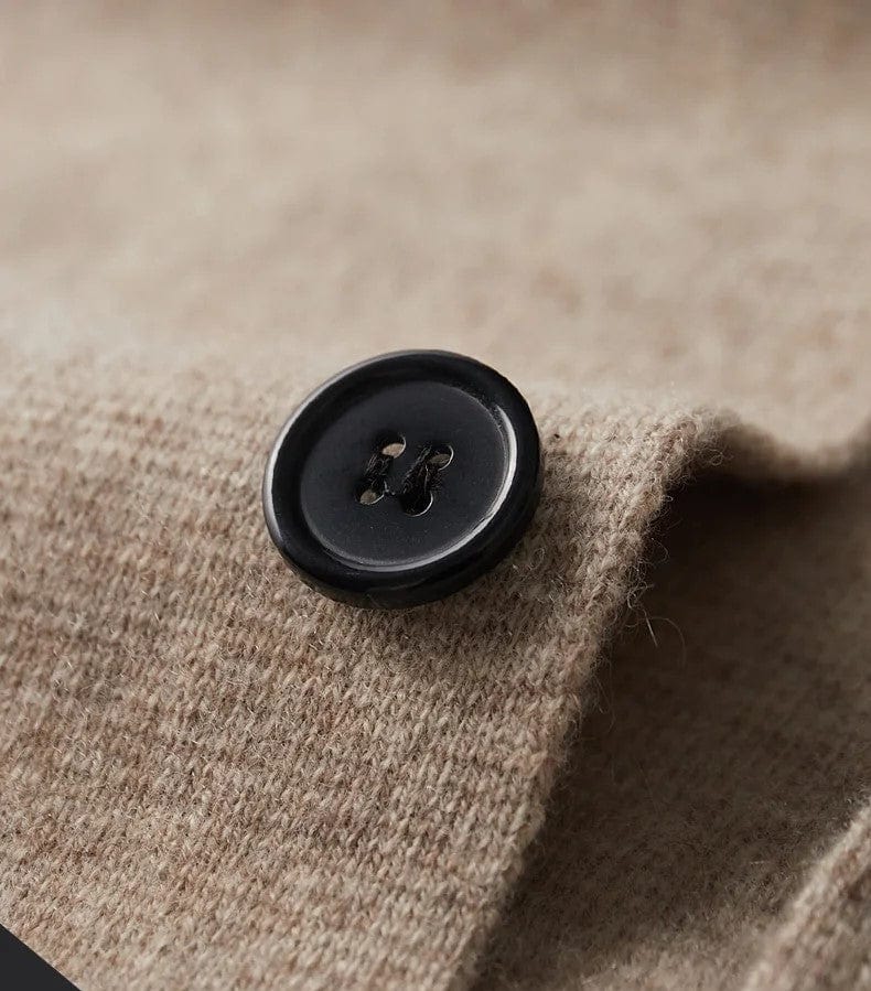 Es handelt sich um einen Cardigan-Pullover mit V-Ausschnitt und Knopfleiste, der aus gestricktem Stoff gefertigt ist, der weich und äußerst angenehm zu tragen ist. Er ist auch leicht zu waschen, was eine langanhaltende Haltbarkeit gewährleistet. Er ist leicht und fühlt sich gut in der Hand an, sodass Sie sich bei kaltem Wetter angenehm und warm fühlen.