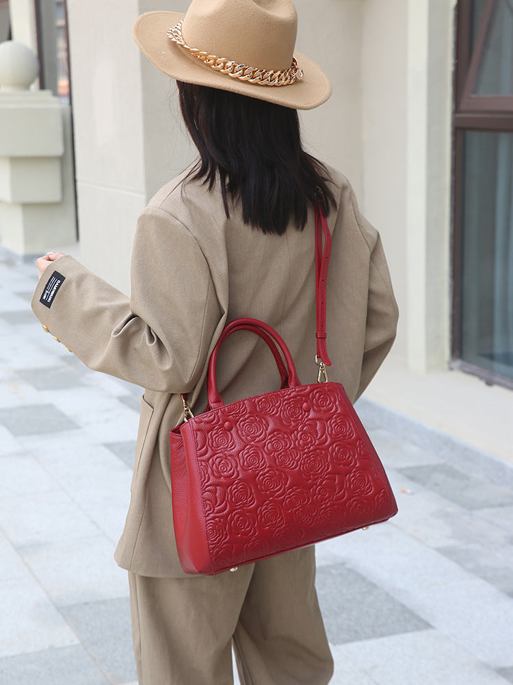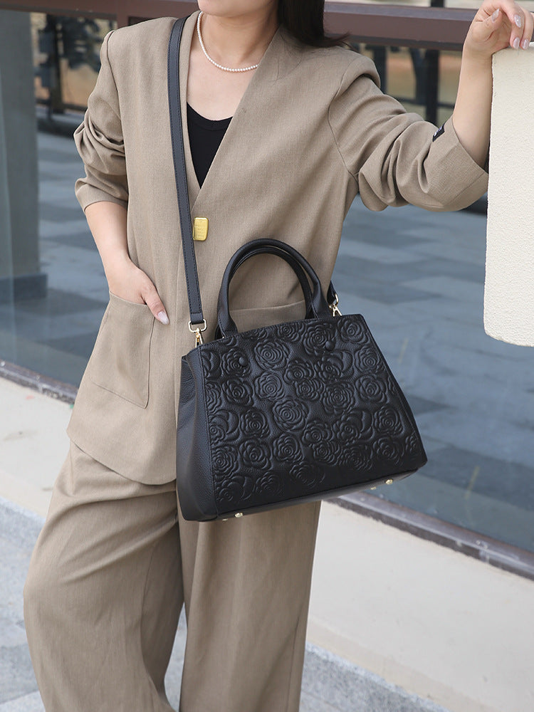 Elegante Handtasche mit floraler Prägung – eine Kombination aus klassischem Charme und moderner Raffinesse. Ideal für anspruchsvolle Looks und perfekt abgestimmt auf Business- und Freizeitoutfits.