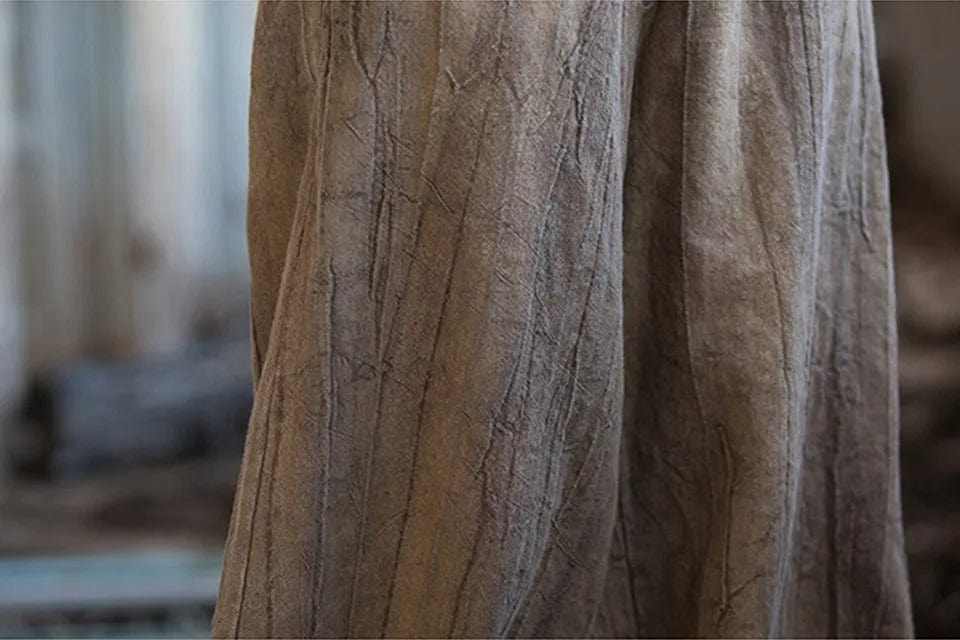 Es ist aus 71% Ramie und 29% Baumwolle gefertigt. Es ist weich, atmungsaktiv, hautfreundlich und angenehm zu berühren und zu tragen, was Ihnen ein gutes Gefühl verleiht. Es hat einen elastischen und hohen Bund mit einem Zugband für eine flexible Passform, ein Design mit weitem Bein, das eine lockere Passform bietet, und eine volle Länge sowie tiefe Seitentaschen.
