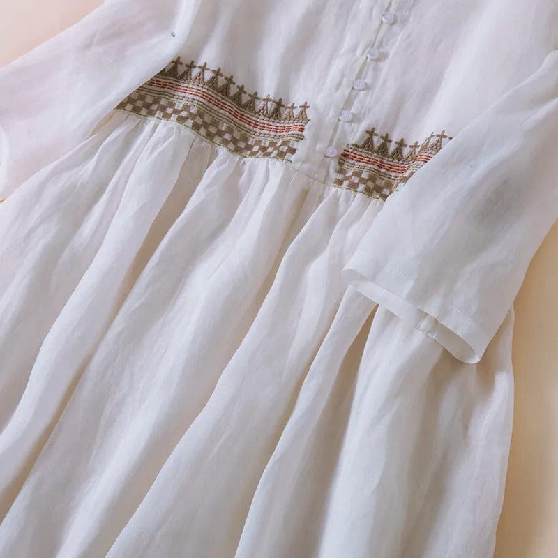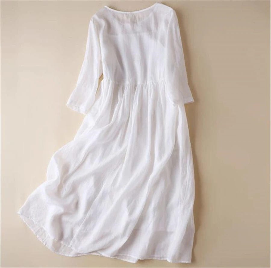 Das Kleid besteht aus einer Baumwollmischung, die weich und atmungsaktiv ist und Sie den ganzen Tag über kühl und bequem hält. Es hat eine lockere Passform, einen Rundhalsausschnitt, lange Ärmel, eine mittellange Länge, ein komplexes Stickdesign und einen halben Knopfverschluss für zusätzliche Eleganz und einen schlankmachenden Effekt. Sie werden mit diesem Kleid den Charme des Boho-Stils umarmen.