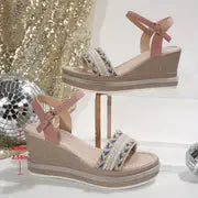 Melanie - Elegante Plateausandalen für Frauen mit perlenbesetztem Knöchelriemen