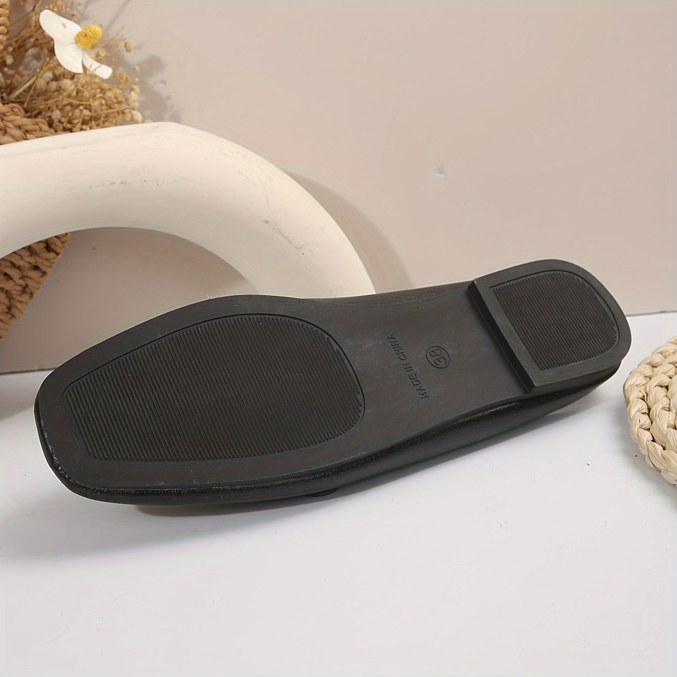 Metallische Schnalle Pantoletten für Frauen, Quadratische Zehe Outdoor Loafer