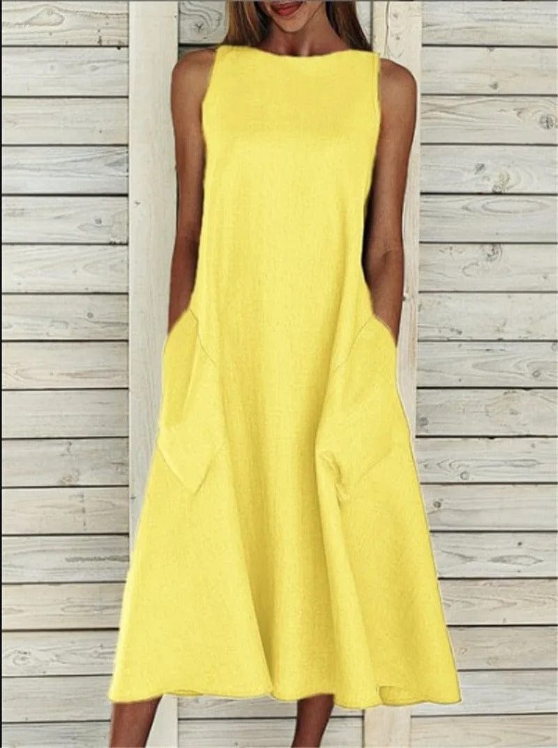 Dieses entzückende lässige Kleid hat einen großartigen schlanken Schnitt und perfekte hochwertige Stoffe. Es besteht aus hochwertiger Baumwollgewebe, weich und komfortabel, und hält Sie kühl und bequem. Das ärmellose Design zeigt die Schulterlinien besser, und das große Taschendesign auf beiden Seiten macht die Kleidung nicht mehr eintönig.