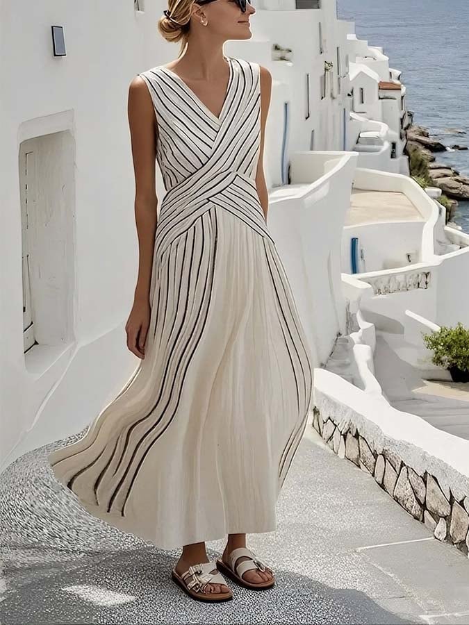 De Mira is dé jurk voor vrouwen die comfort en klasse willen combineren. De ademende stof en gestreepte print zorgen voor een frisse look die je eenvoudig afmaakt met sandalen of sneakers. Perfect voor elke zomerdag.