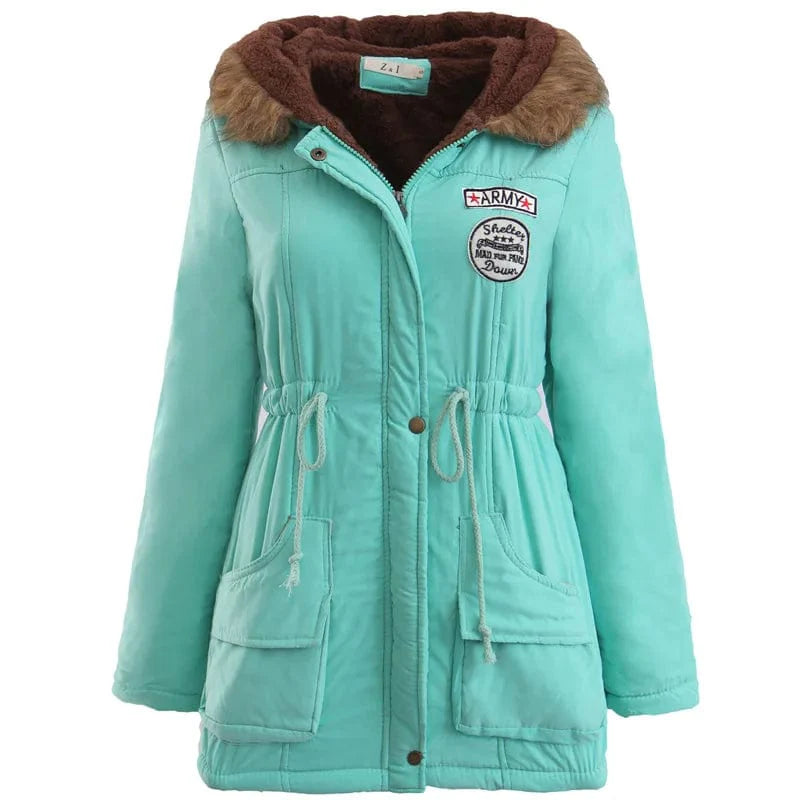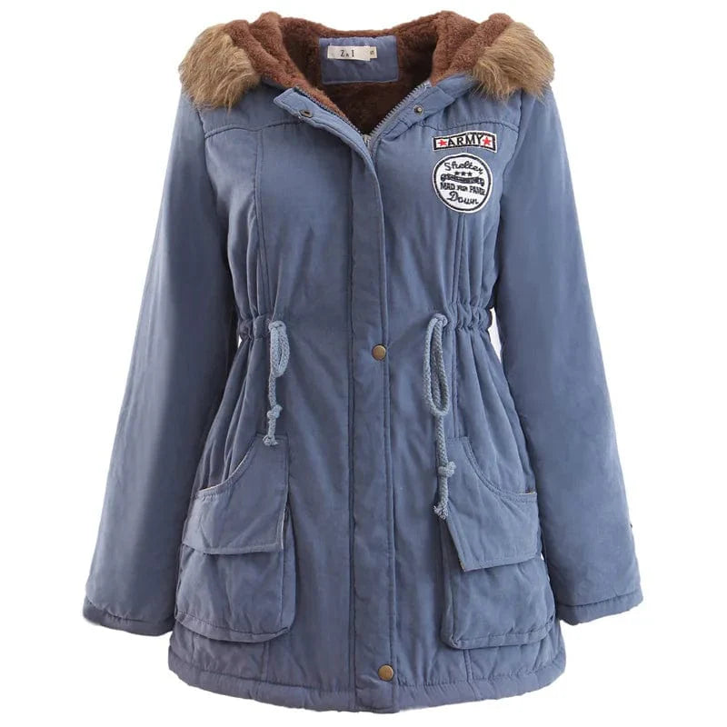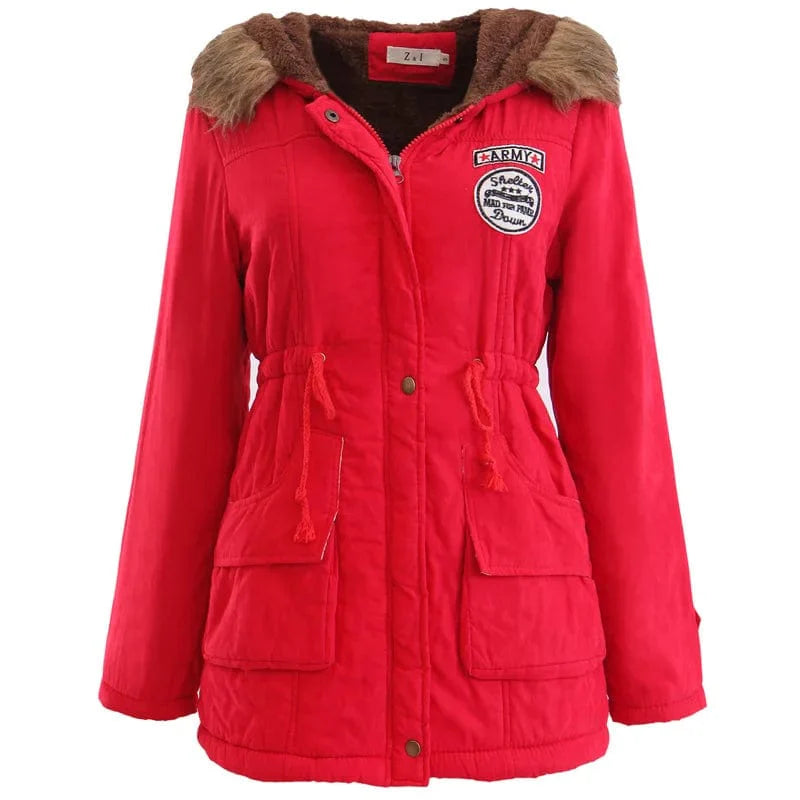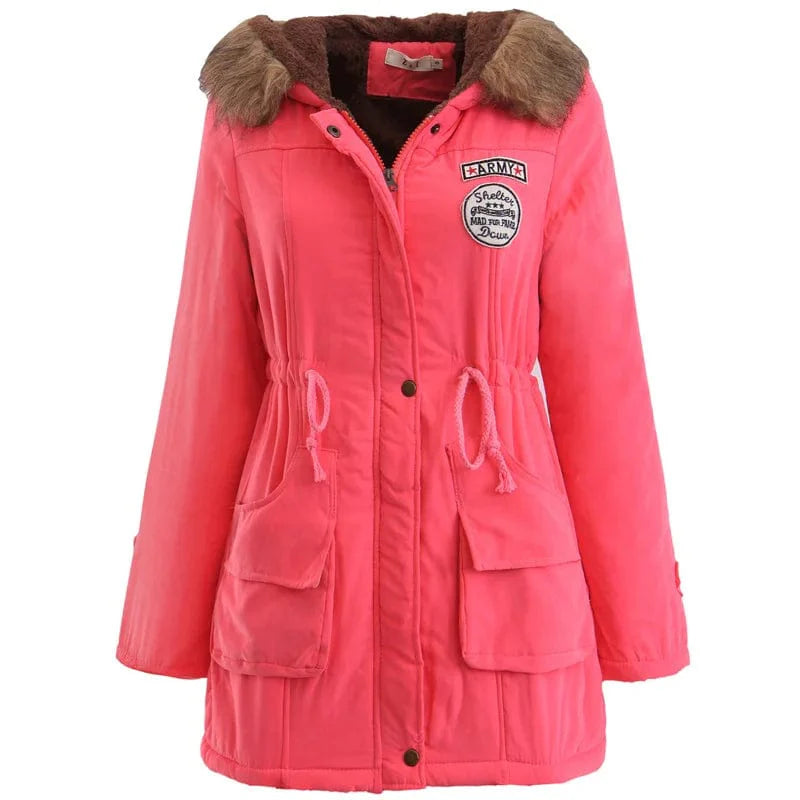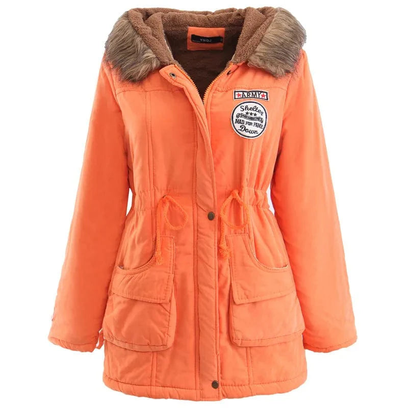 Mit unserem POLLIE - Parka-Mantel mit langem Schnitt, Fellkragen und Kapuze aus Baumwolle können Sie einen wunderschönen Winter erleben. Dieser Mantel ist einzigartig im Stil, sodass Sie im kalten Winter nicht auf Schönheit, Stil, Sexiness und Eleganz verzichten müssen! Es handelt sich um eine weiche und elegante Jacke mit halblangem Reißverschluss und dezentem Finish, die einen luxuriösen Eindruck vermittelt. Sie ähnelt einem Militärmantel, der für einen coolen, legeren Stil unverzichtbar ist.