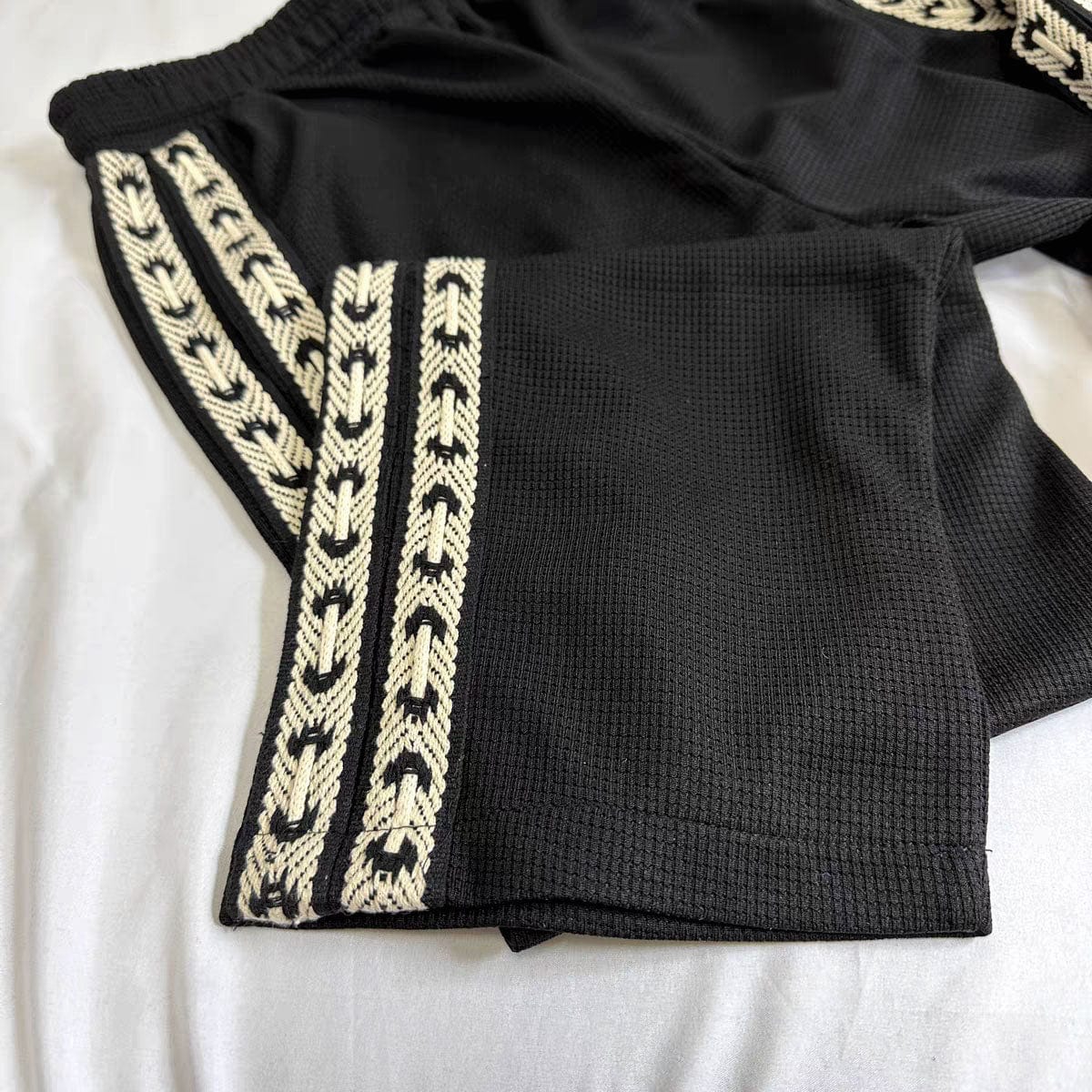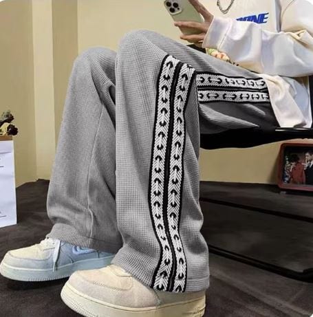 Entdecken Sie ein neues Niveau von Stil und Komfort mit unseren RANIER - Geraden, weit geschnittenen Baggy-Hosen, die durch auffällige doppelte weiße Linien, die einen markanten Knoten-Effekt erzeugen, bestechen. Mit ihrem lockeren Schnitt und dem Street-Style-Flair sind diese Hosen die perfekte Ergänzung für jede lässige Garderobe.