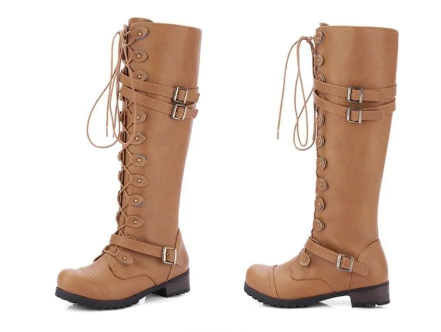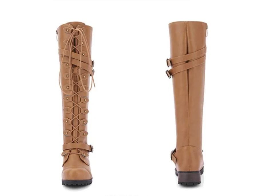 Riley - Damenstiefel im römischen Stil mit Schnürung bis zum Knie und Plateausohlen