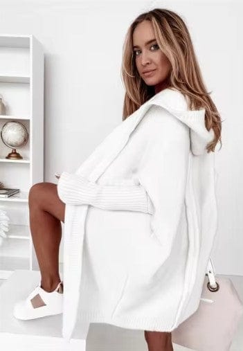 Unsere SASA - Kapuzen-Strickjacke wird Ihrem Kleiderschrank sofort ein stilvolles Upgrade verleihen. Diese Damen-Strickjacke aus dickem Material ist ideal für die kalten Herbst- und Wintermonate. Ihr lässiges Design bietet einen eleganten Touch, den Sie gerne zu jedem Anlass tragen werden. Ein unverzichtbarer Basisteil für Ihre Garderobe, das sich immer gut kombinieren lässt.
