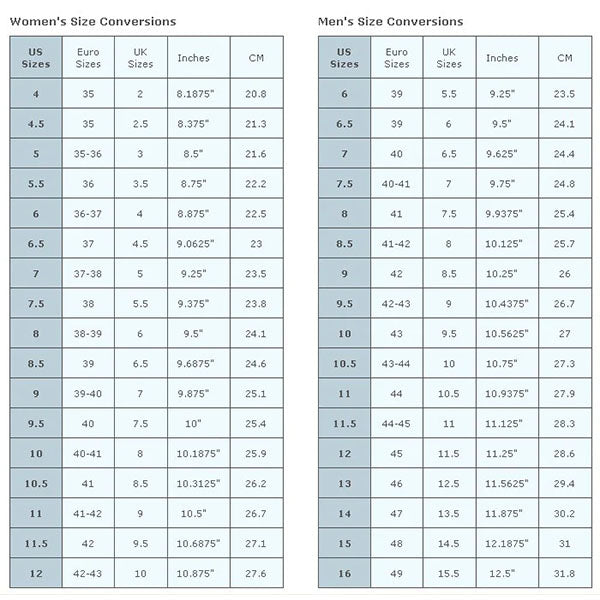 | EU-Größe | UK-Größe | US-Größe | Fußlänge (cm) |