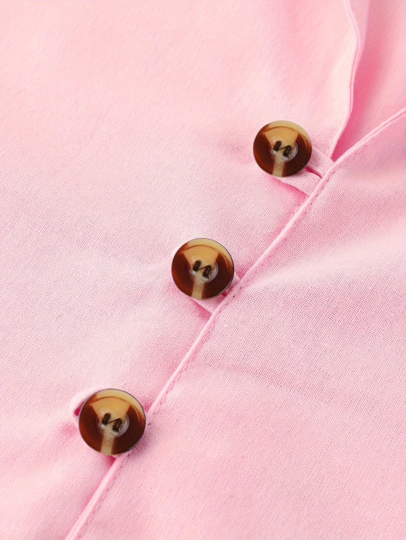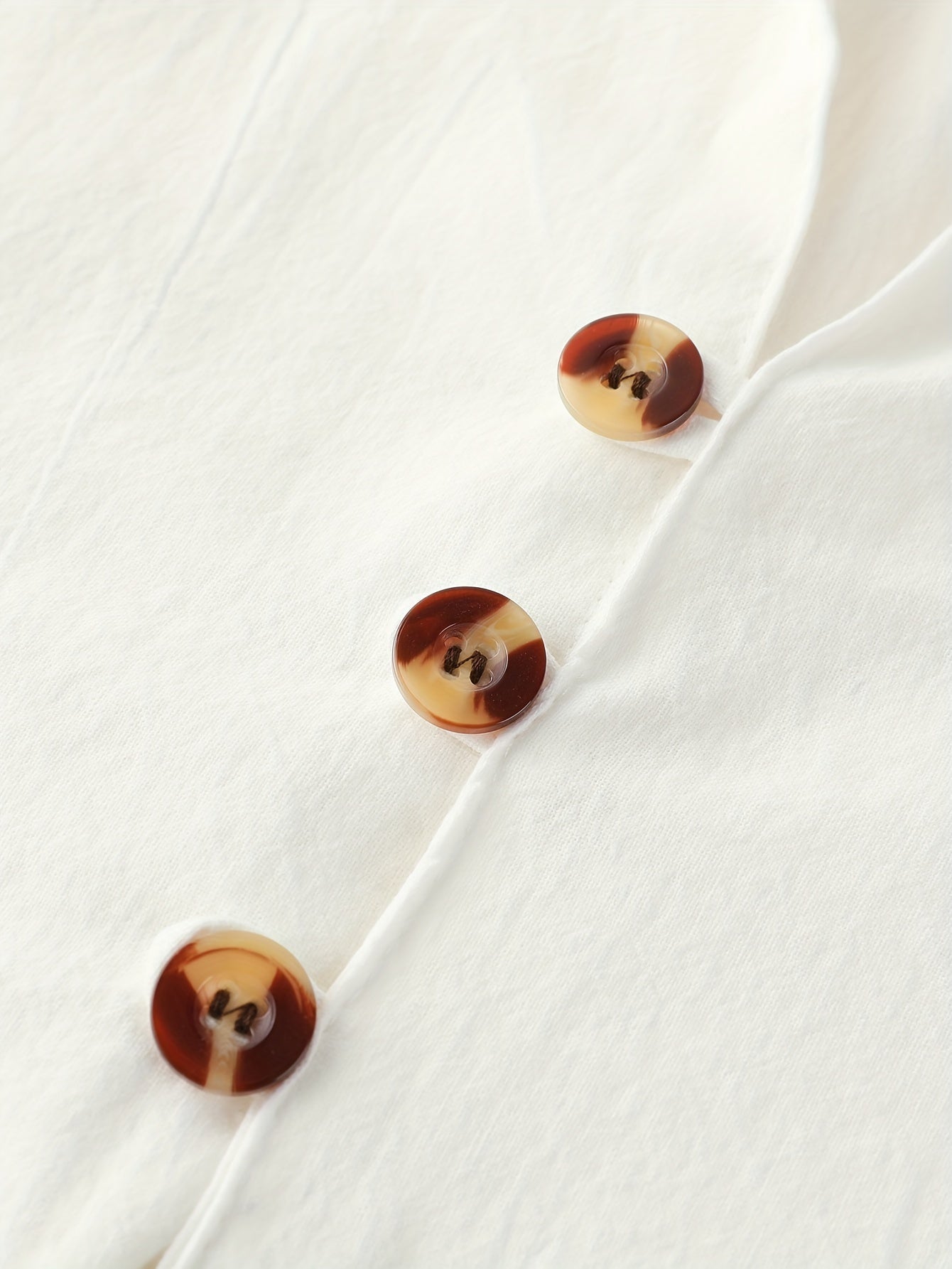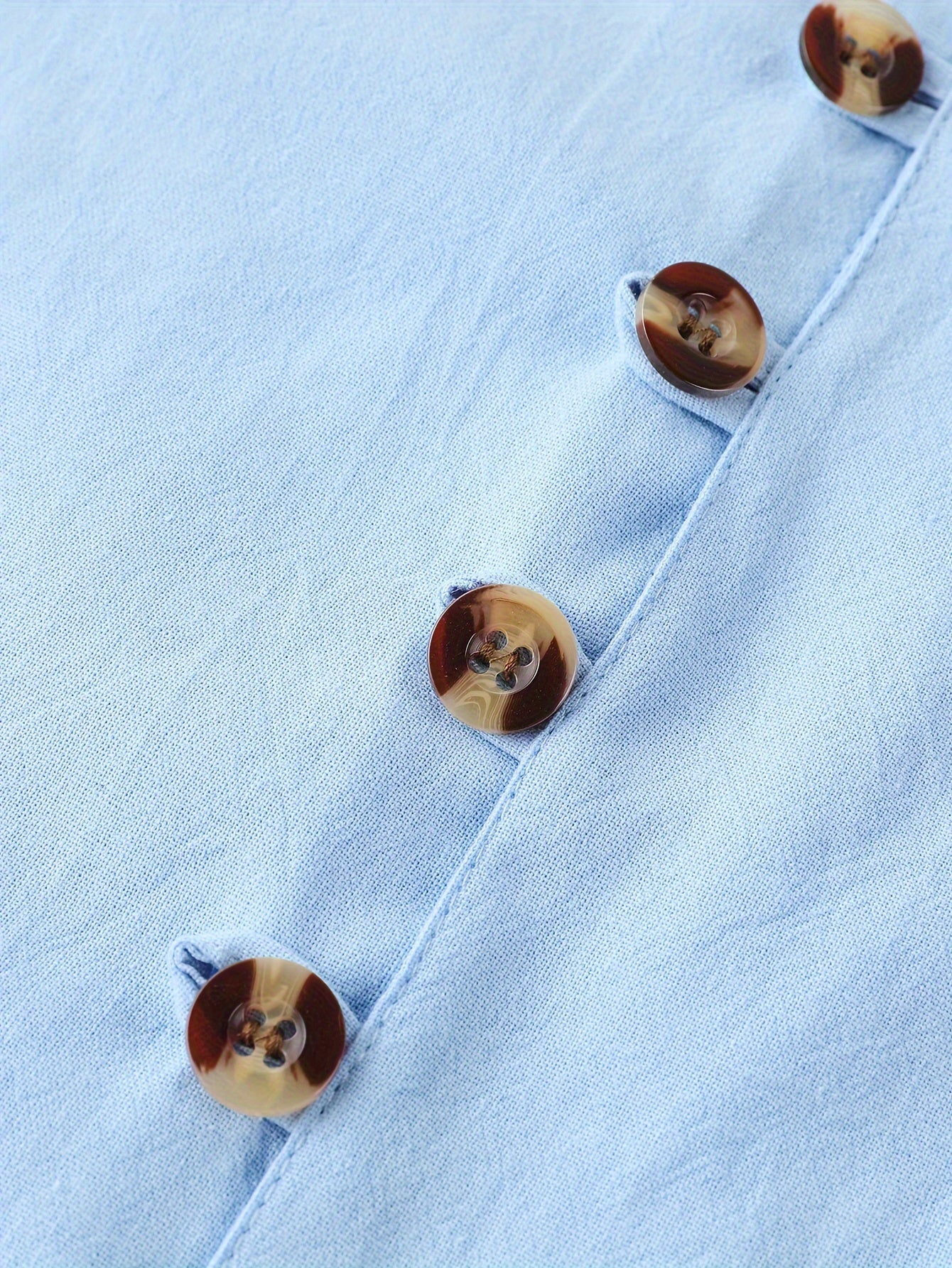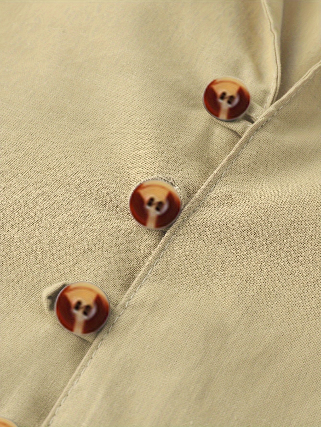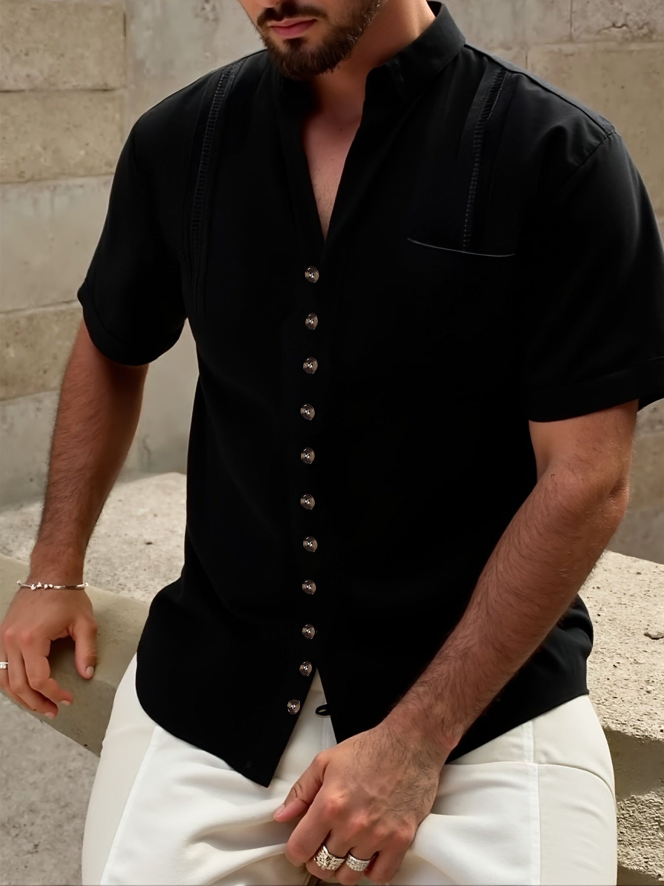 Sommer-Leinenhemd – Kurzarm, Baumwollmischung, Stehkragen & Knopfdetails