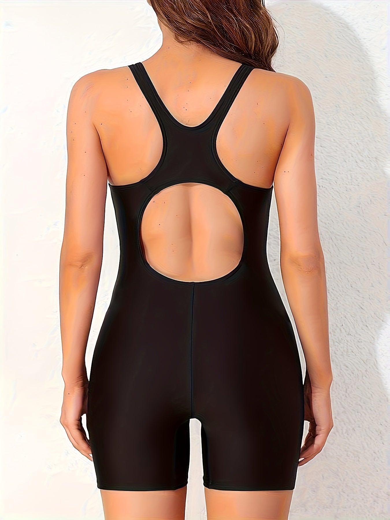 Sportlicher Einteiler-Badeanzug mit Streifen – Hoher Stretch, Rundhalsausschnitt