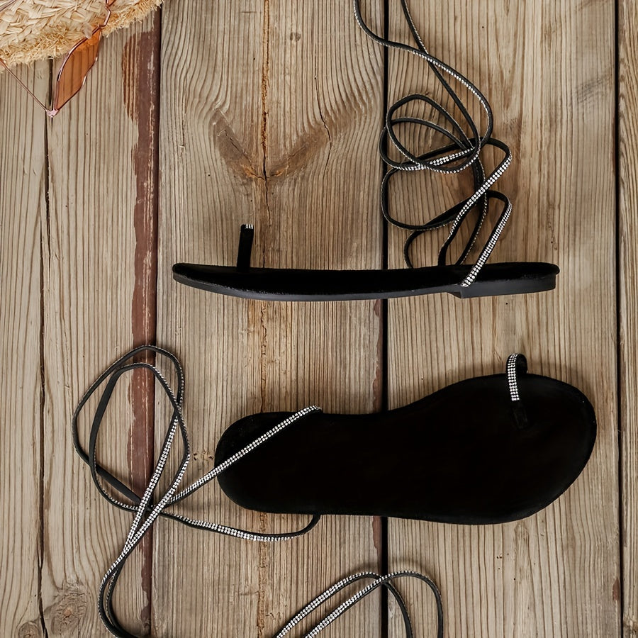 Strass-Kreuz-Riemen-Sandalen, Glitzer Zehenschleife Flats