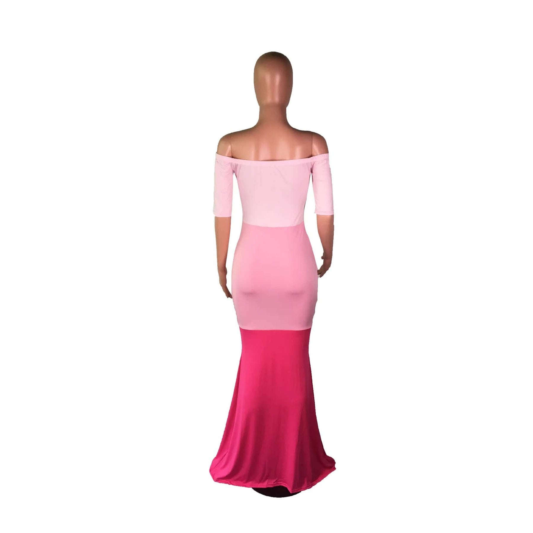 Dieses sexy modische Off-Shoulder-Kleid hat einen dreifarbigen Patchwork-Meerjungfrauenschnitt und besteht aus hochwertigem Polyester- und Elasthan-Material, das dehnbar, weich und bequem ist. Dieses sexy Bodycon-Partykleid kommt mit Off-Shoulder, modischem Farbblock, schmaler Passform, Fishtail, bodenlang, halblangen Ärmeln und betont die Kurven an den richtigen Stellen.