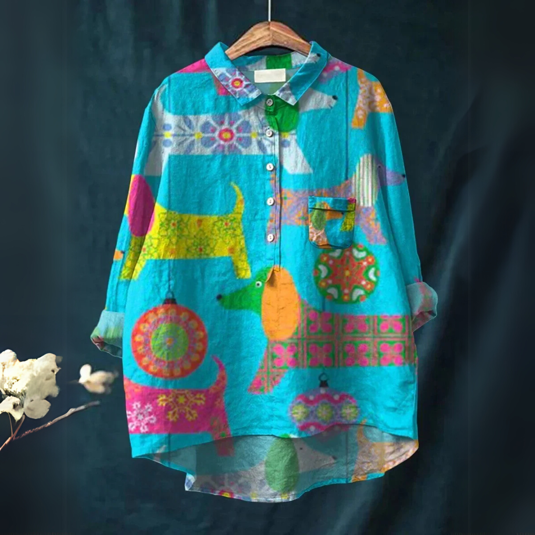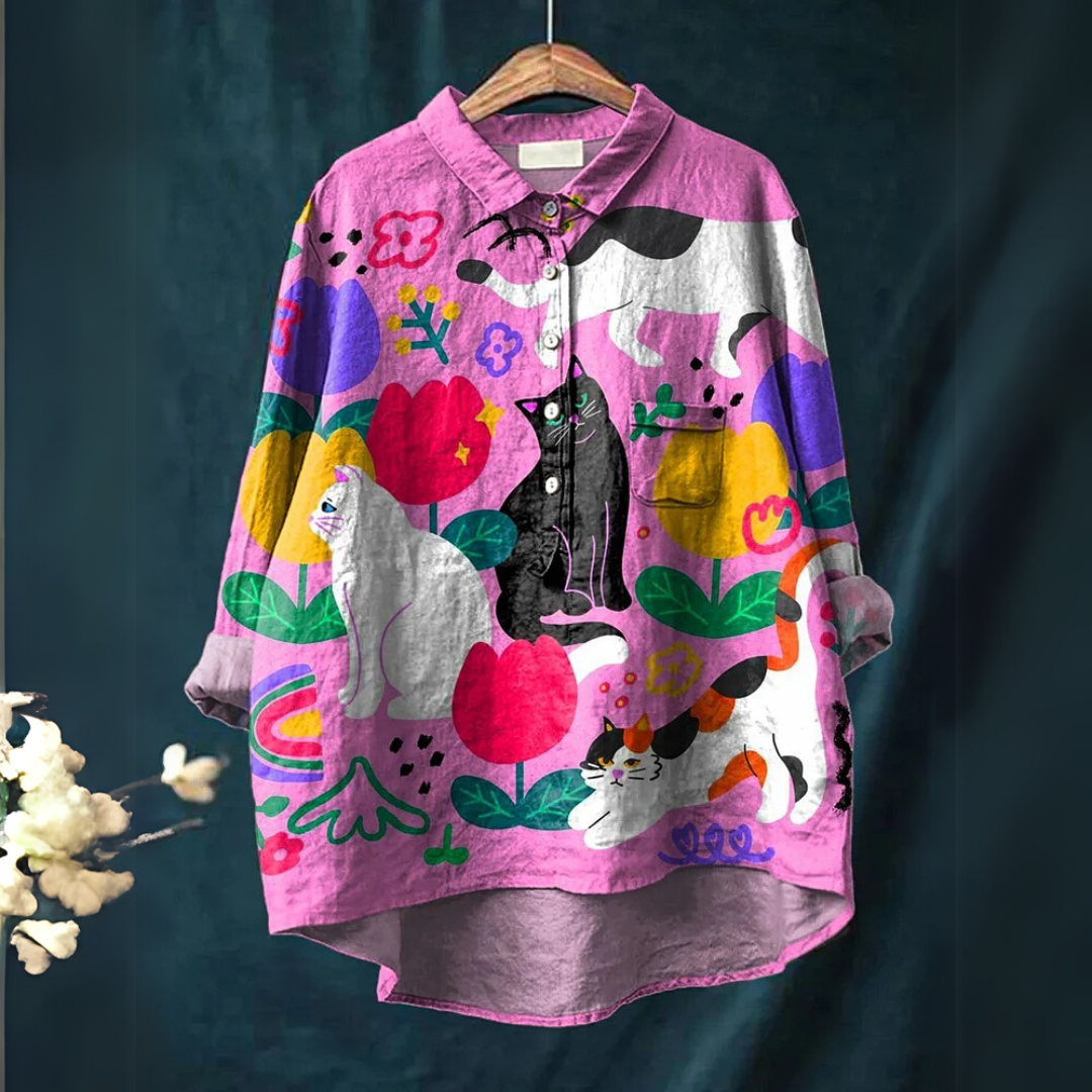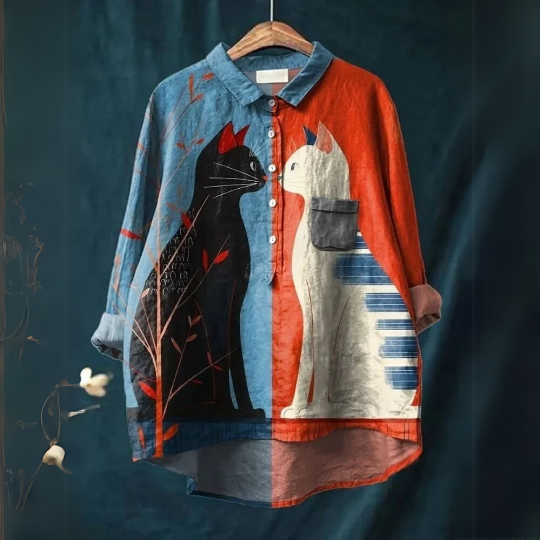 - Design: Einzigartiger Kunstdruck mit klassischem Kragen und über Hüfthöhe