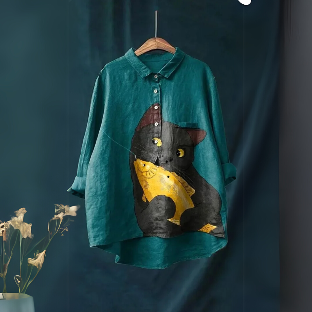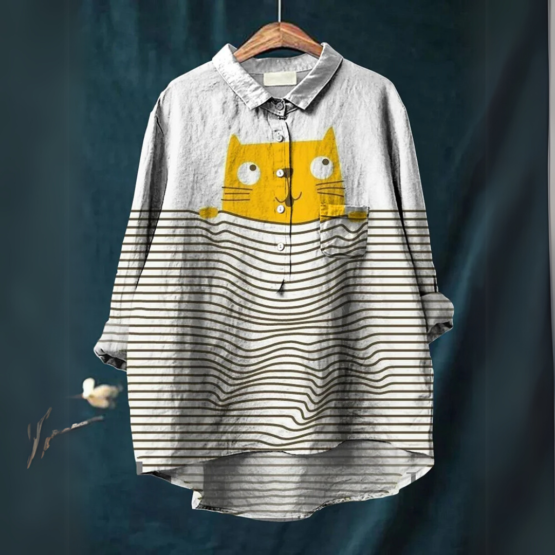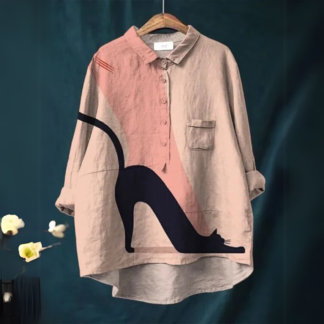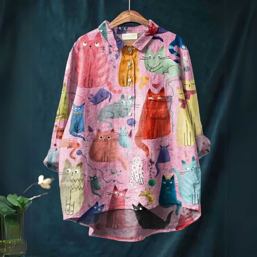 - Design: Einzigartiger Kunstdruck mit klassischem Kragen und über Hüfthöhe