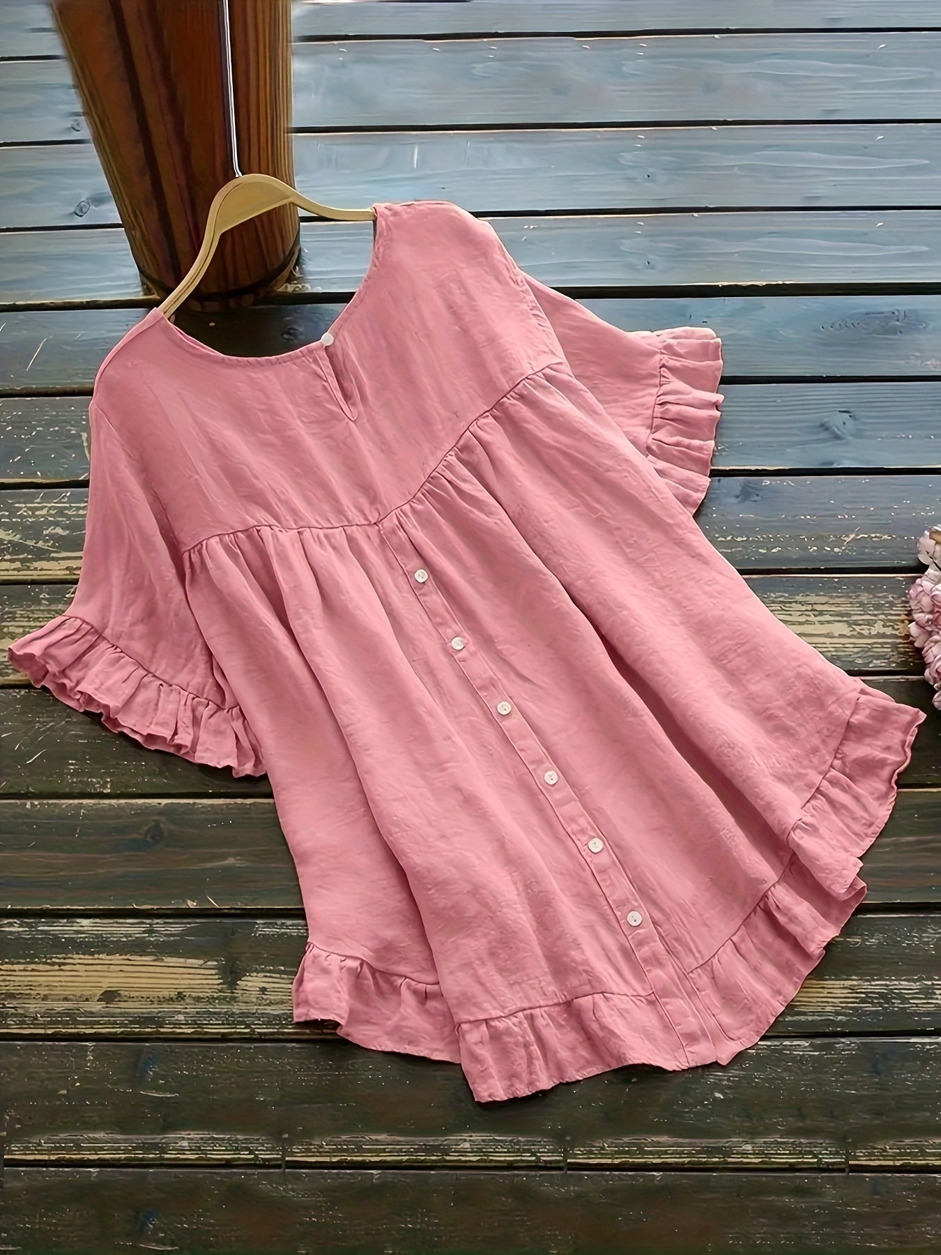 Vintage Bluse – Rüschen Knopfleiste Baumwoll-Mix