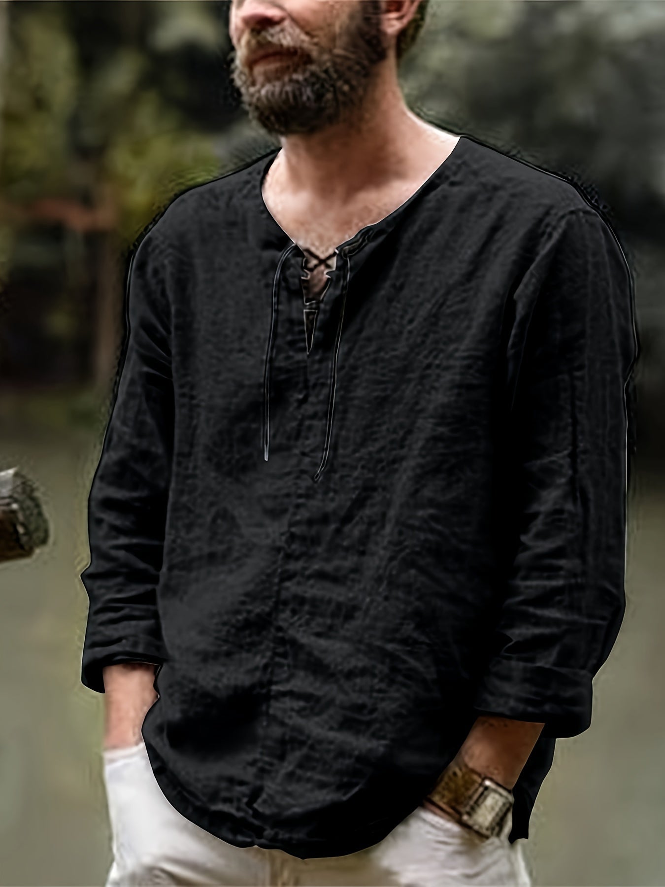 Vintage-Leinenhemd – Langarm Henley-Shirt aus Baumwollmischung, Atmungsaktiv